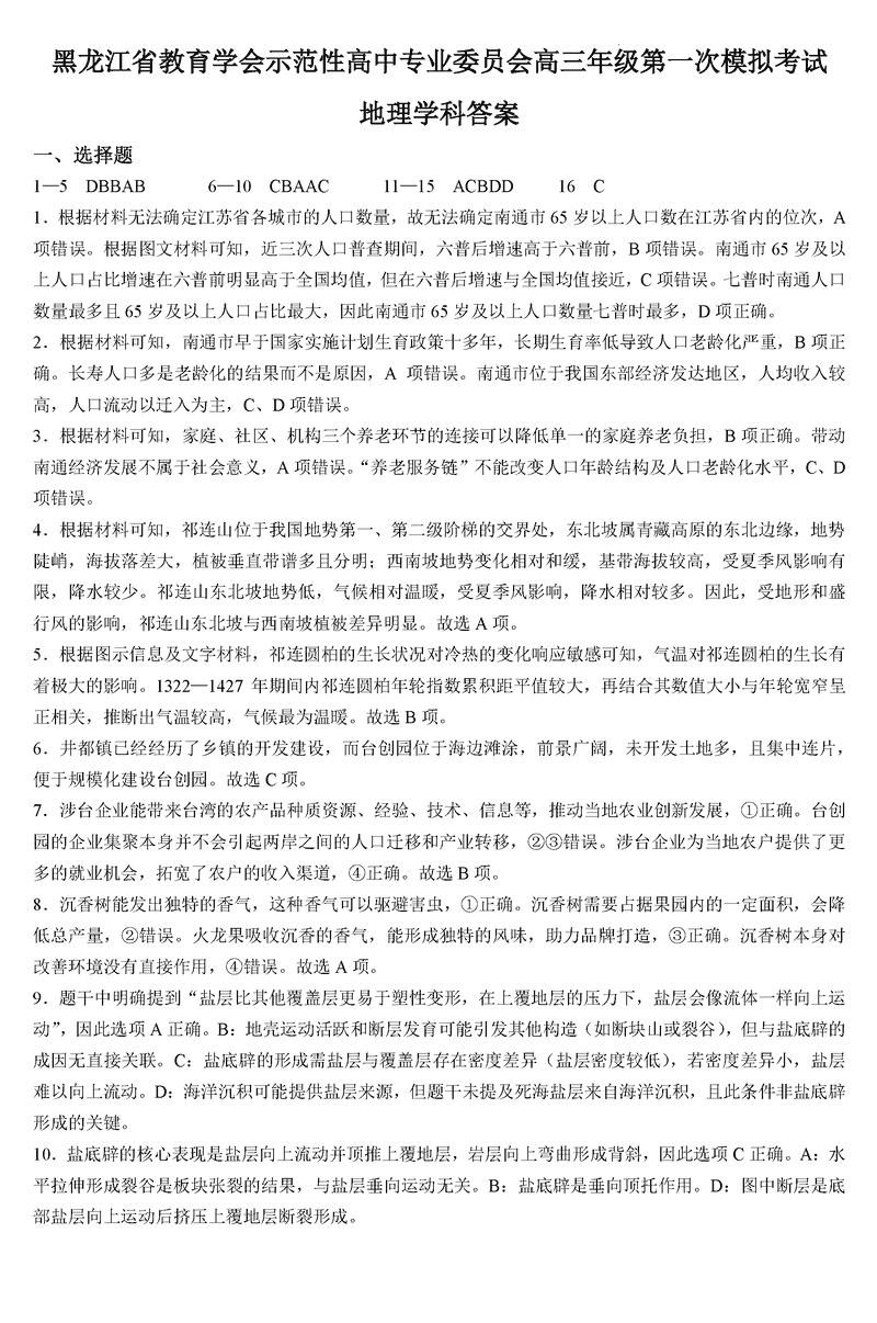 黑龙江教育学会示范性高中专业委员会2025高三第一次模考地理考试已于近日开考,为方便考生考后及时查看考试情况,查漏补缺、弥补不足,本文整理了试题答案解析相关信息!