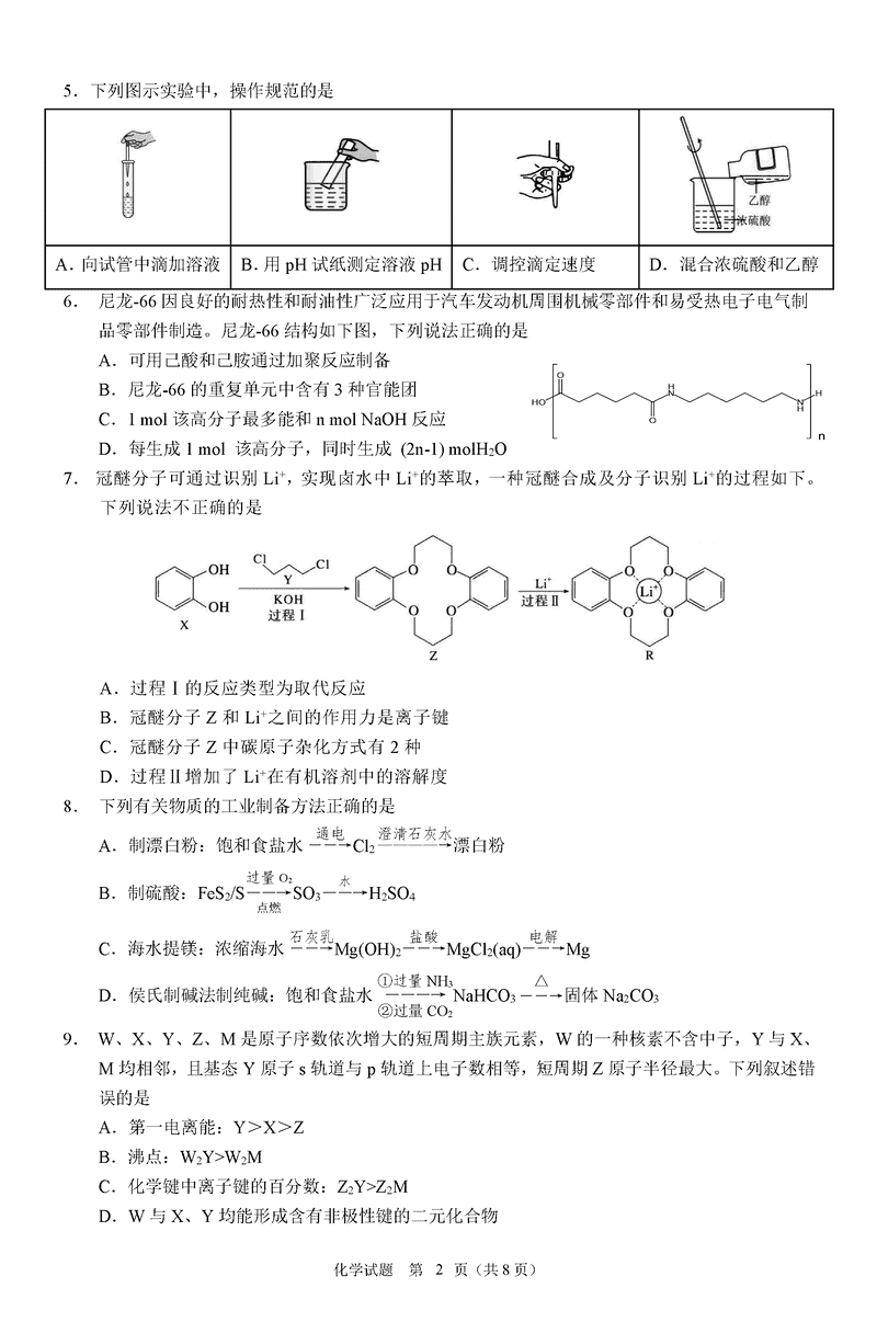 黑龙江教育学会示范性高中专业委员会2025高三第一次模考化学试题及答案