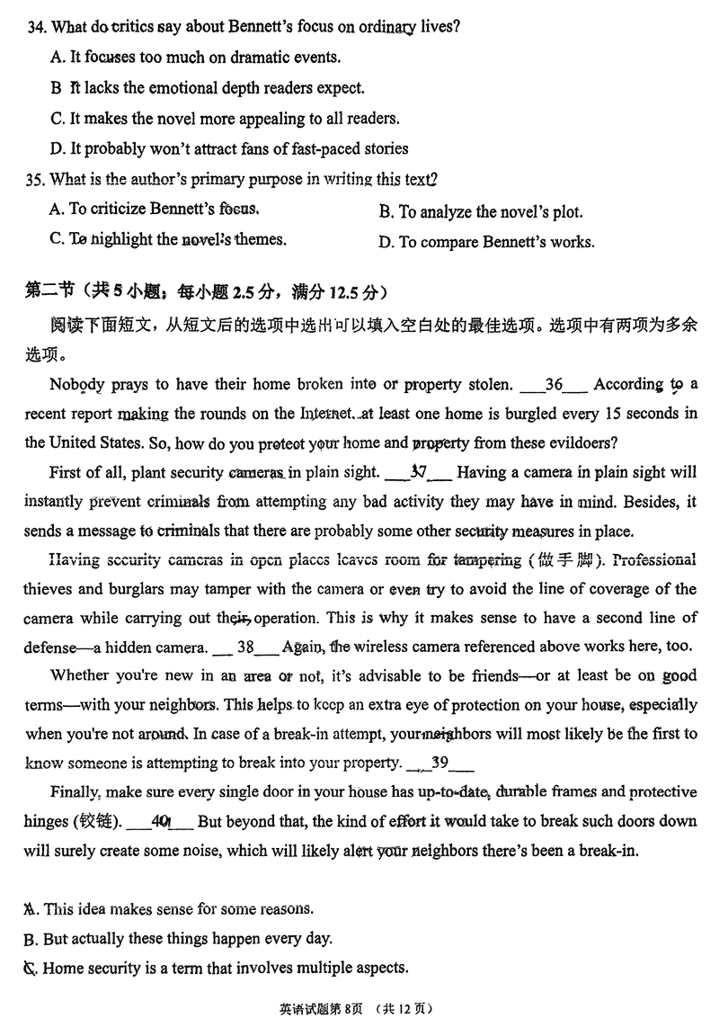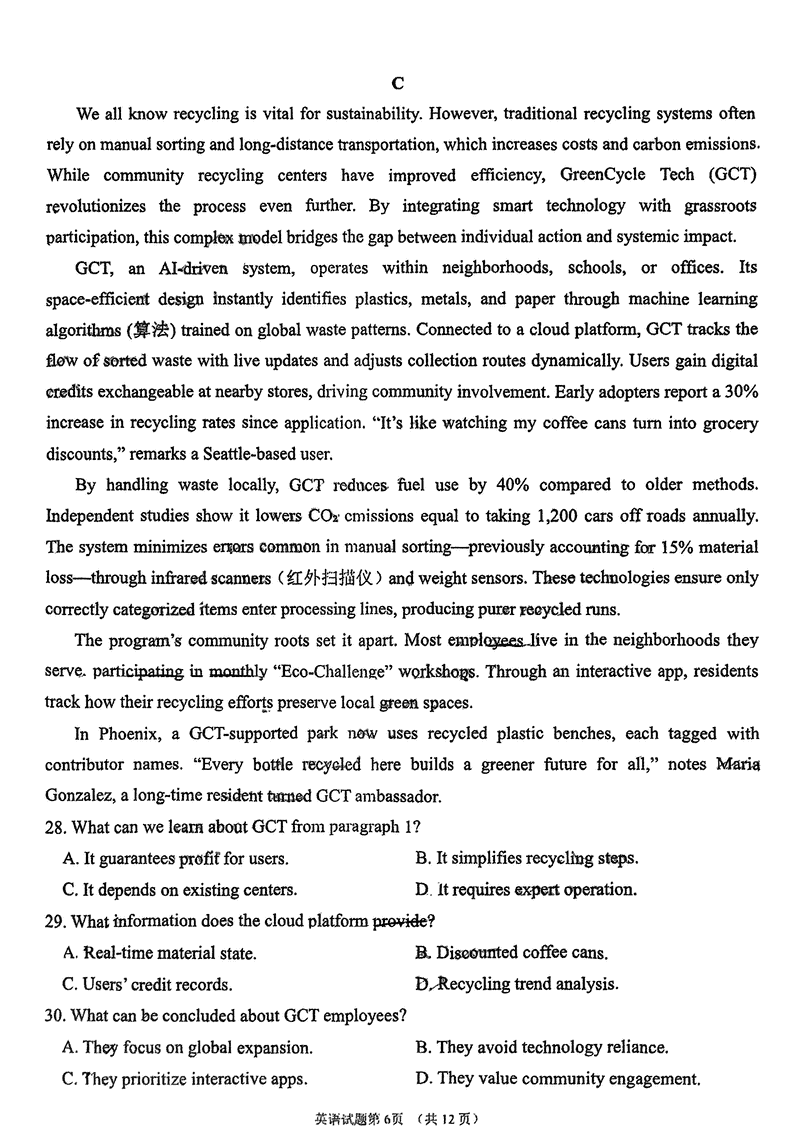 黑龙江教育学会示范性高中专业委员会2025高三第一次模考英语试题及答案
