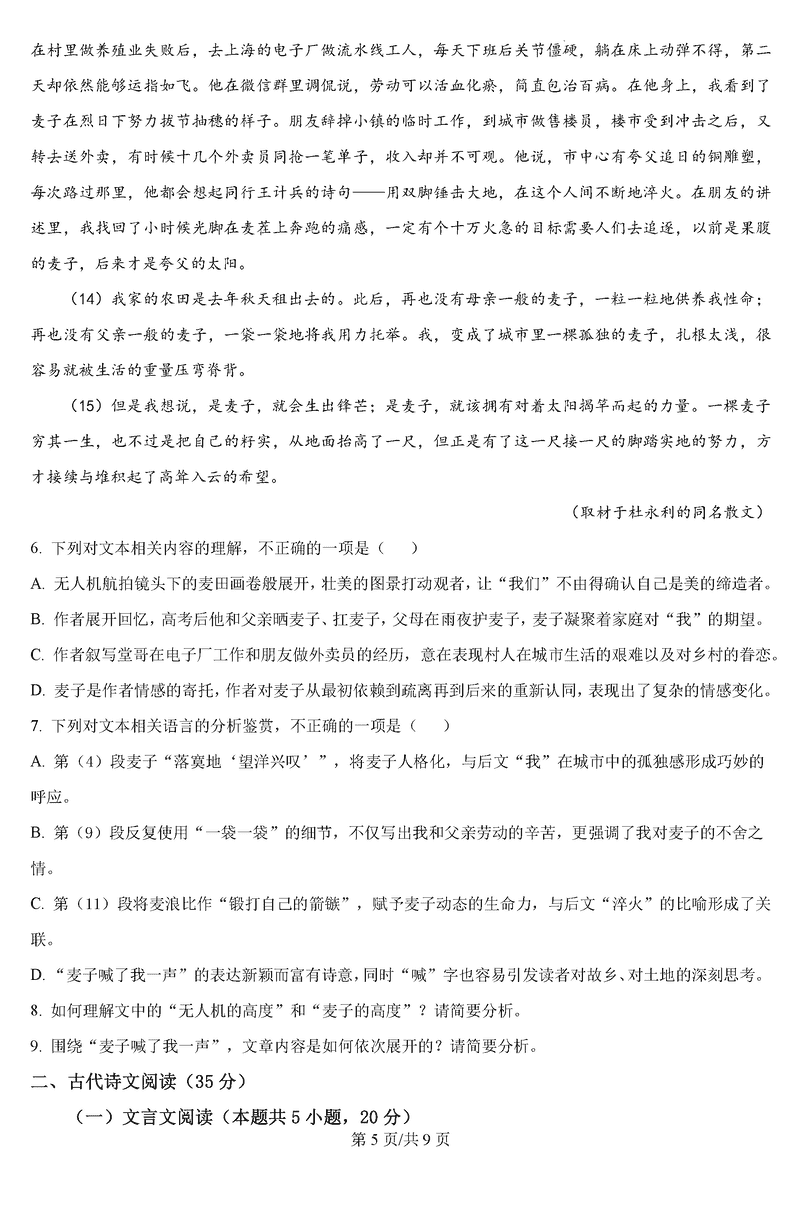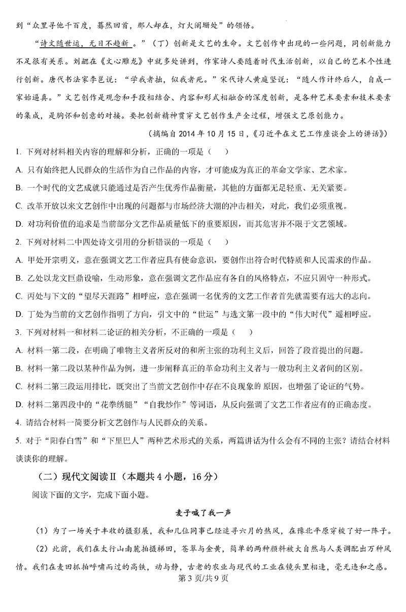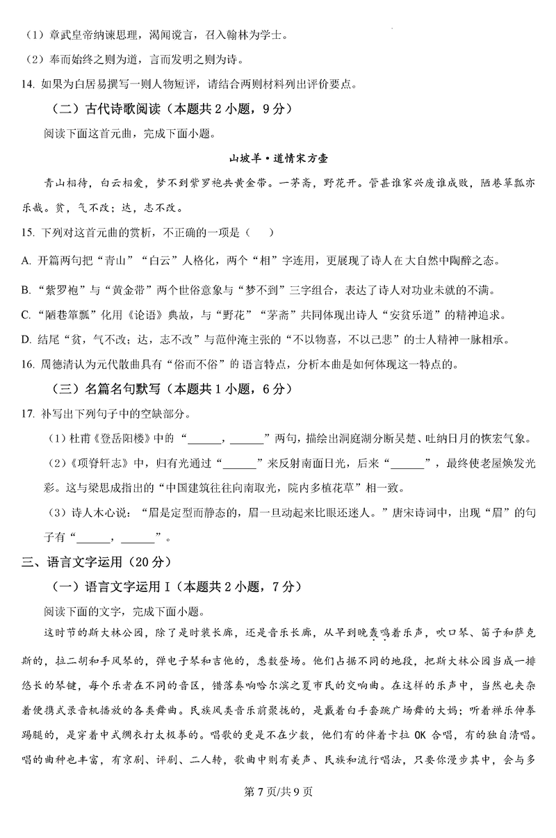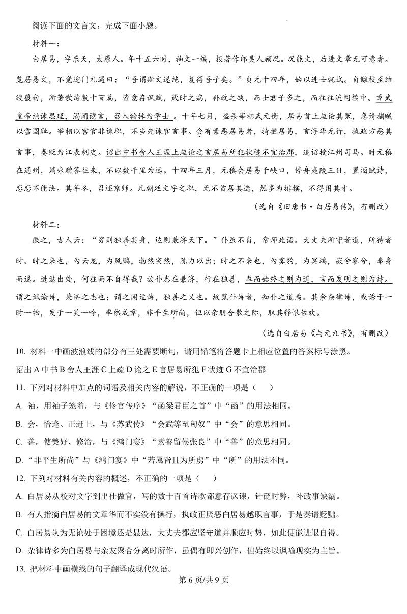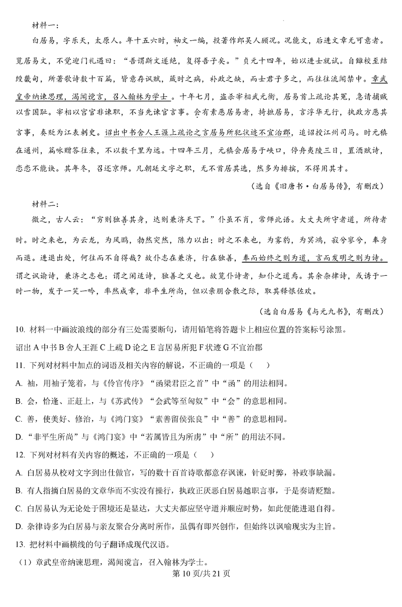黑龙江 语文试题