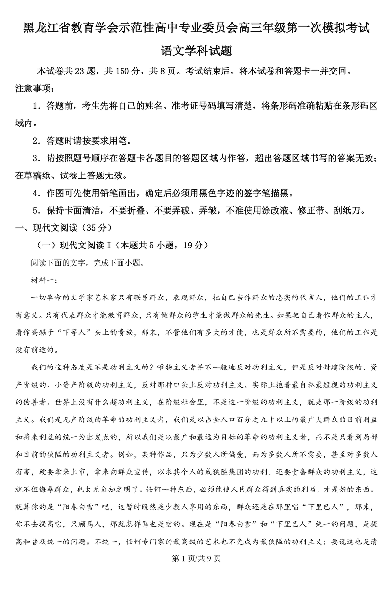 黑龙江教育学会示范性高中专业委员会2025高三第一次模考语文考试已于近日开考,为方便考生考后及时查看考试情况,查漏补缺、弥补不足,本文整理了试题答案解析相关信息!