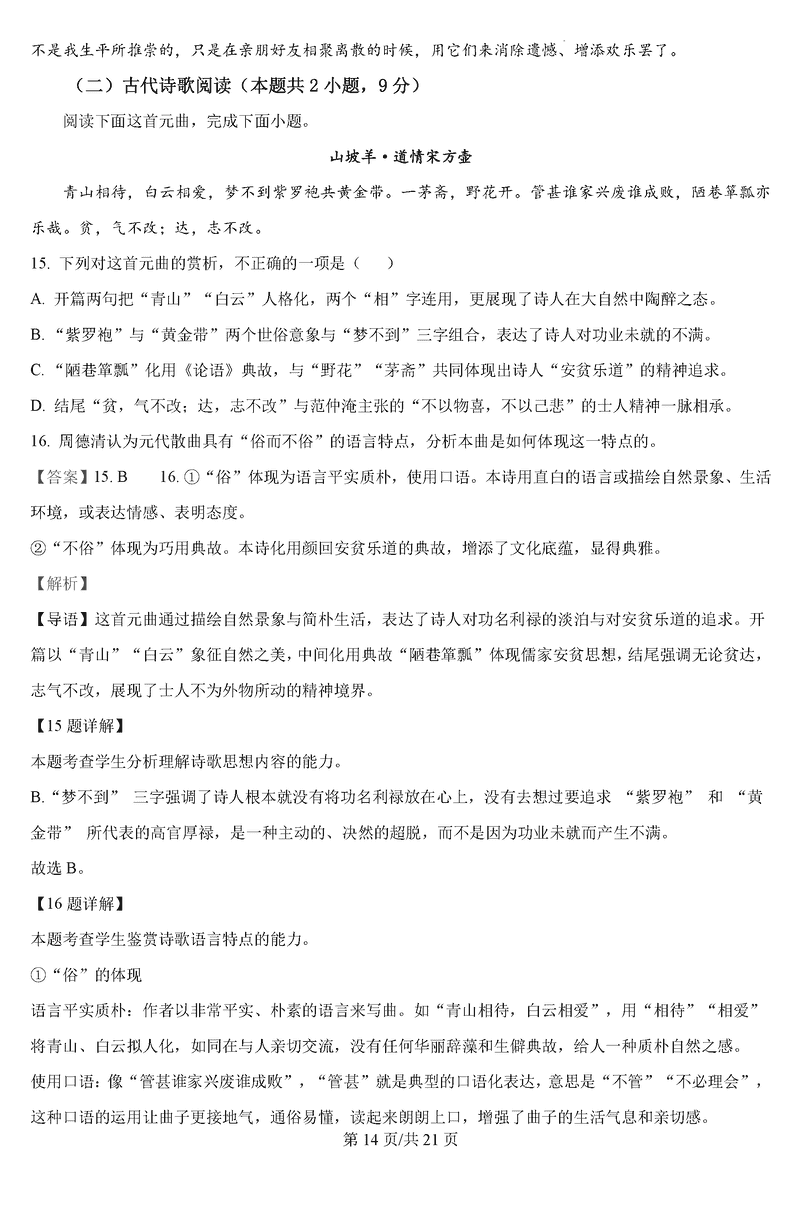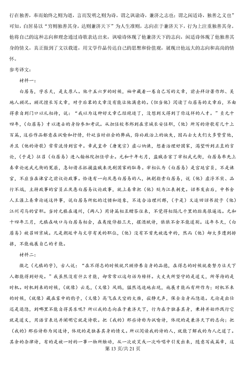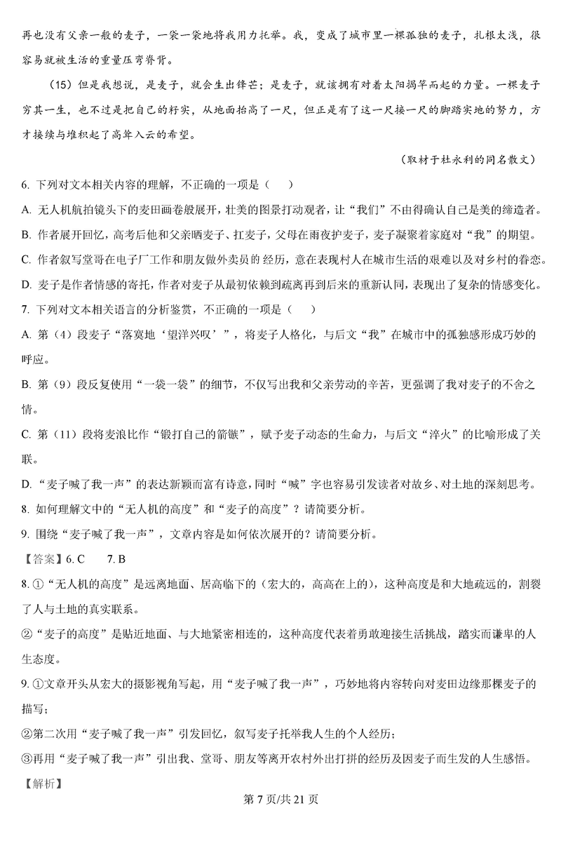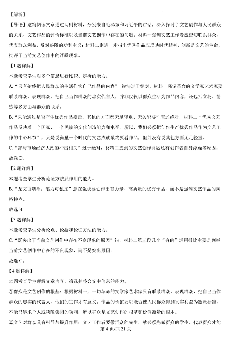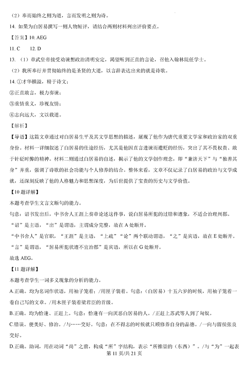 语文试题及答案解析