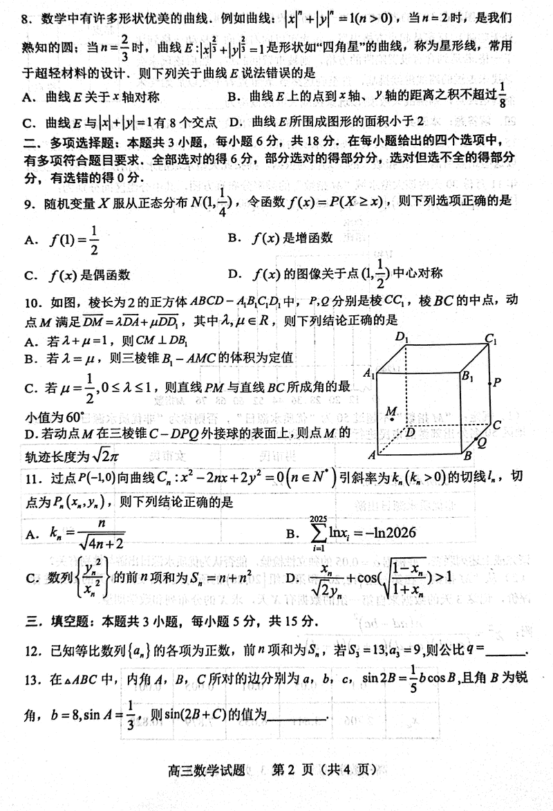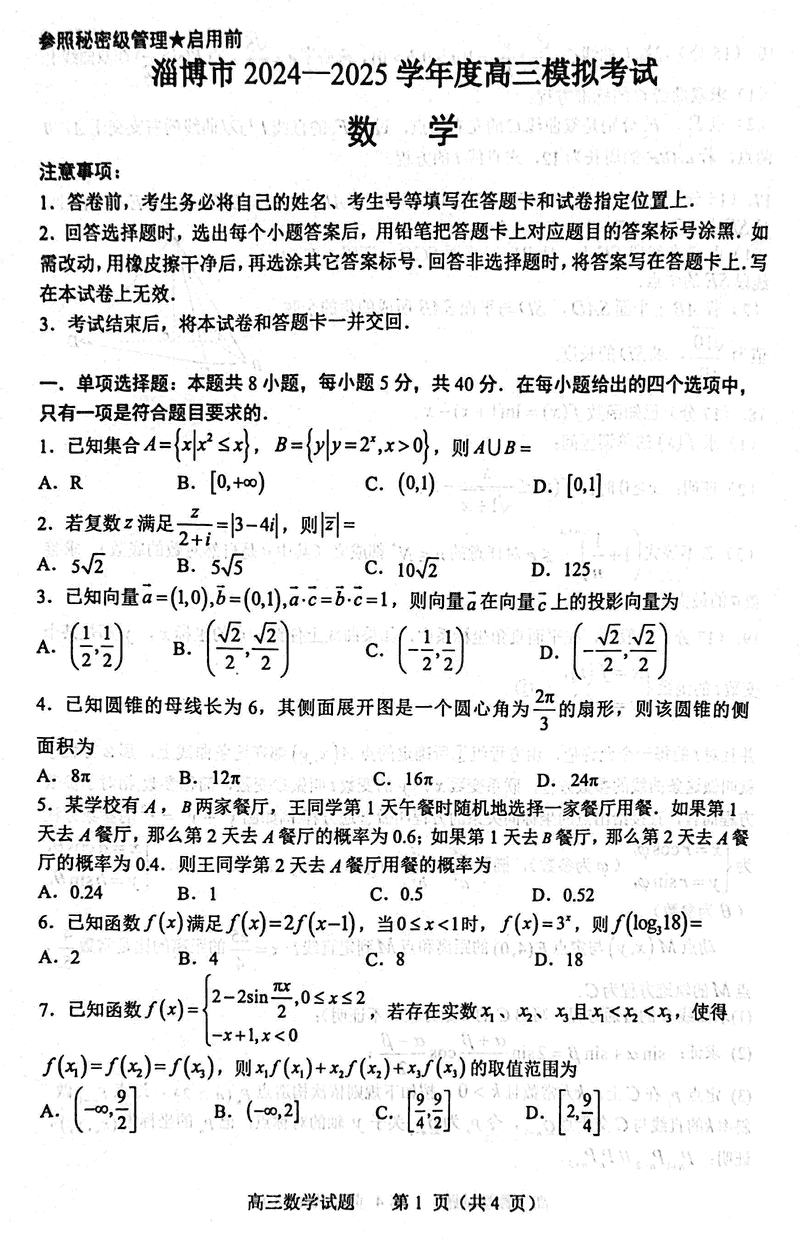 淄博市、滨州市2025届高三下学期3月一模数学试题及答案