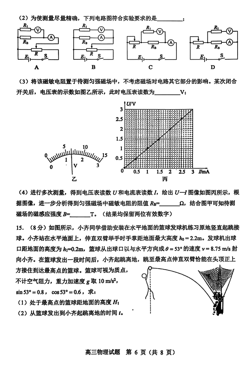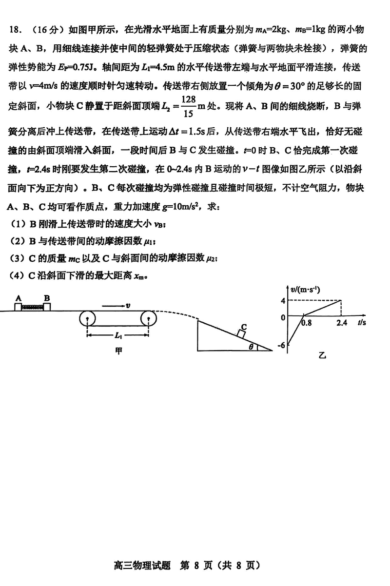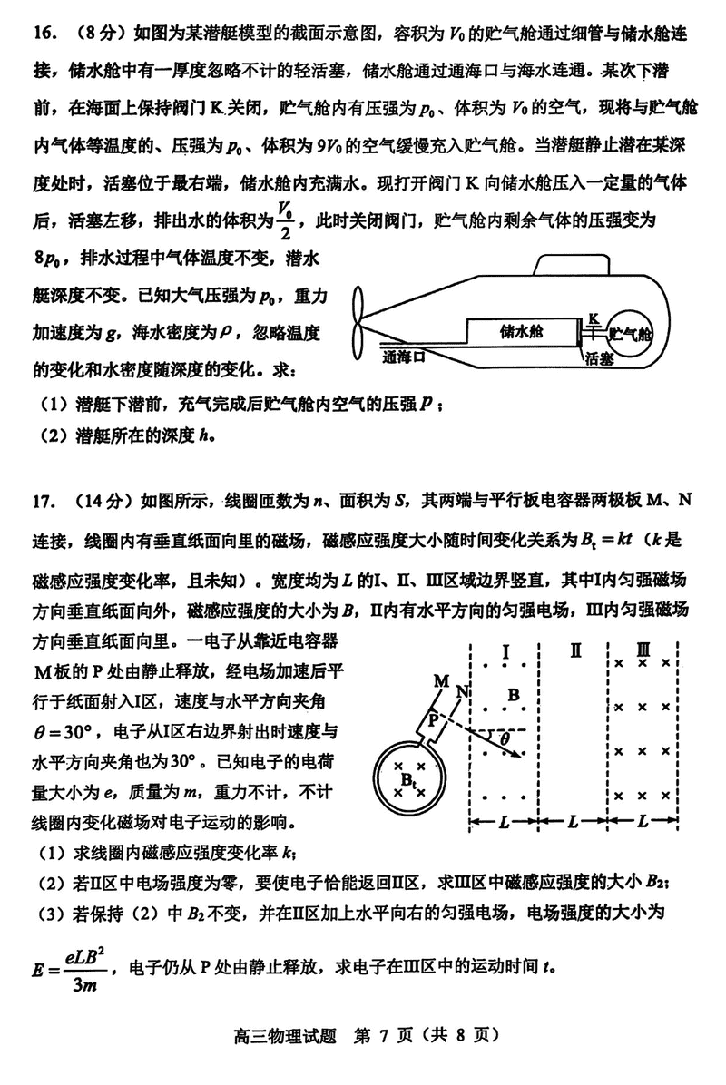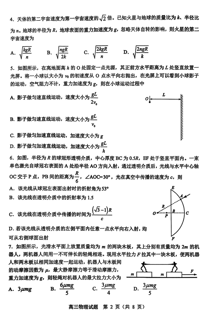 淄博市、滨州市2025届高三下学期3月一模物理试题及答案