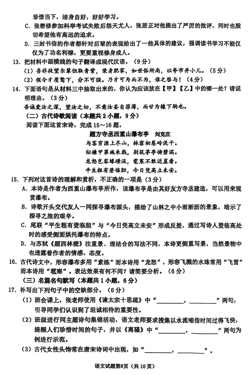 淄博市、滨州市2025届高三下学期3月一模语文考试已于近日开考,为方便考生考后及时查看考试情况,查漏补缺、弥补不足,本文整理了试题答案解析相关信息!