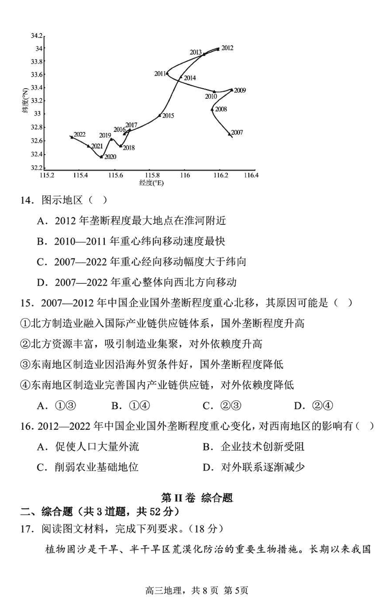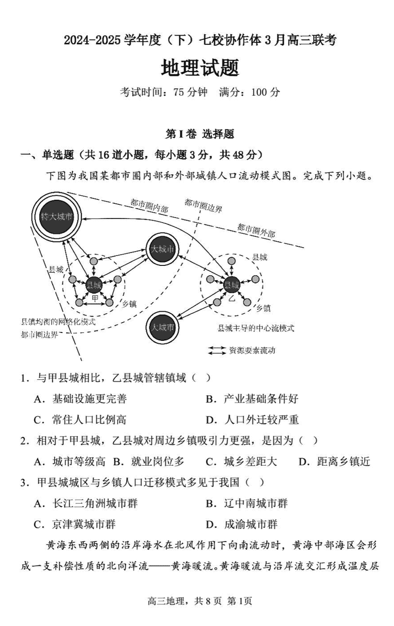 辽宁七校协作体2024-2025学年(下)3月高三联考地理试题及答案