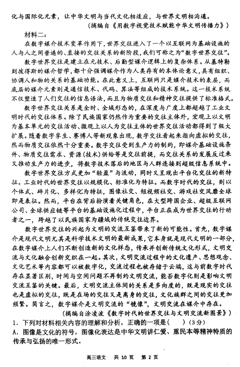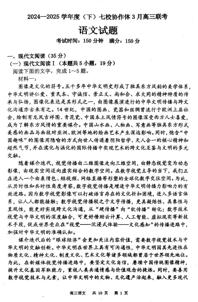 辽宁七校协作体2024-2025学年(下)3月高三联考语文试题及答案