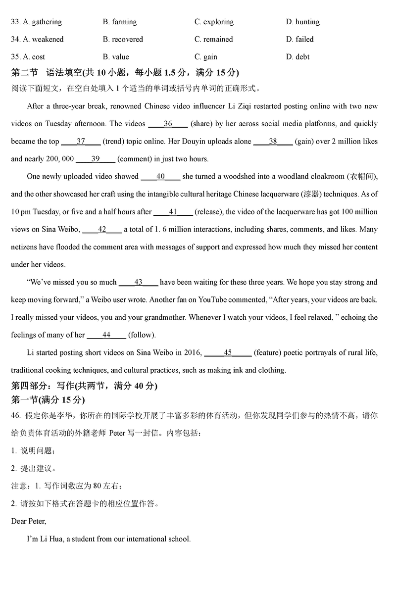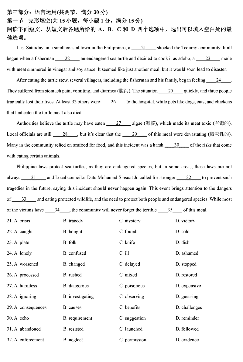 陕西榆林2025届高三第三次模拟检测英语试题及答案 时间:2025-03-11 陕西 英语试题 陕西榆林2025届高三第三次模拟检测英语考试已于近日开考,为方便考生考后及时查看考试情况,查漏补缺、弥补不足,本文整理了试题答案解析相关信息! 汇总:陕西榆林2025届高三第三次模拟检测试题及答案汇总 英语试题及答案解析