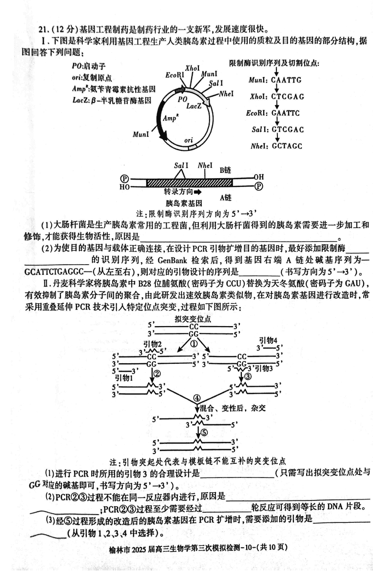 陕西榆林2025届高三第三次模拟检测生物试题及答案 时间:2025-03-11 陕西 理综试题 陕西榆林2025届高三第三次模拟检测生物考试已于近日开考,为方便考生考后及时查看考试情况,查漏补缺、弥补不足,本文整理了试题答案解析相关信息! 汇总:陕西榆林2025届高三第三次模拟检测试题及答案汇总 生物试题及答案解析
