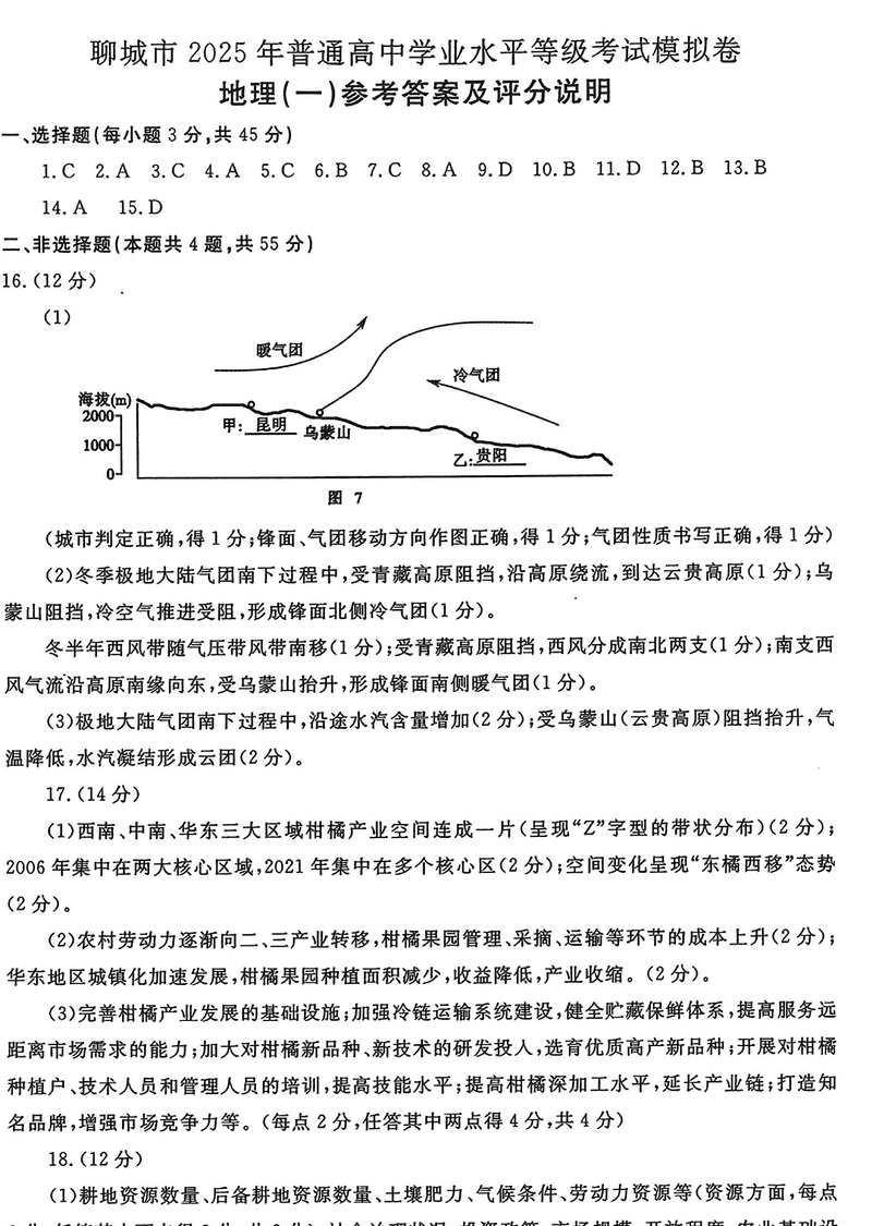 山东聊城一模2025年高三学业水平等级模拟卷地理考试已于近日开考,为方便考生考后及时查看考试情况,查漏补缺、弥补不足,本文整理了试题答案解析相关信息!