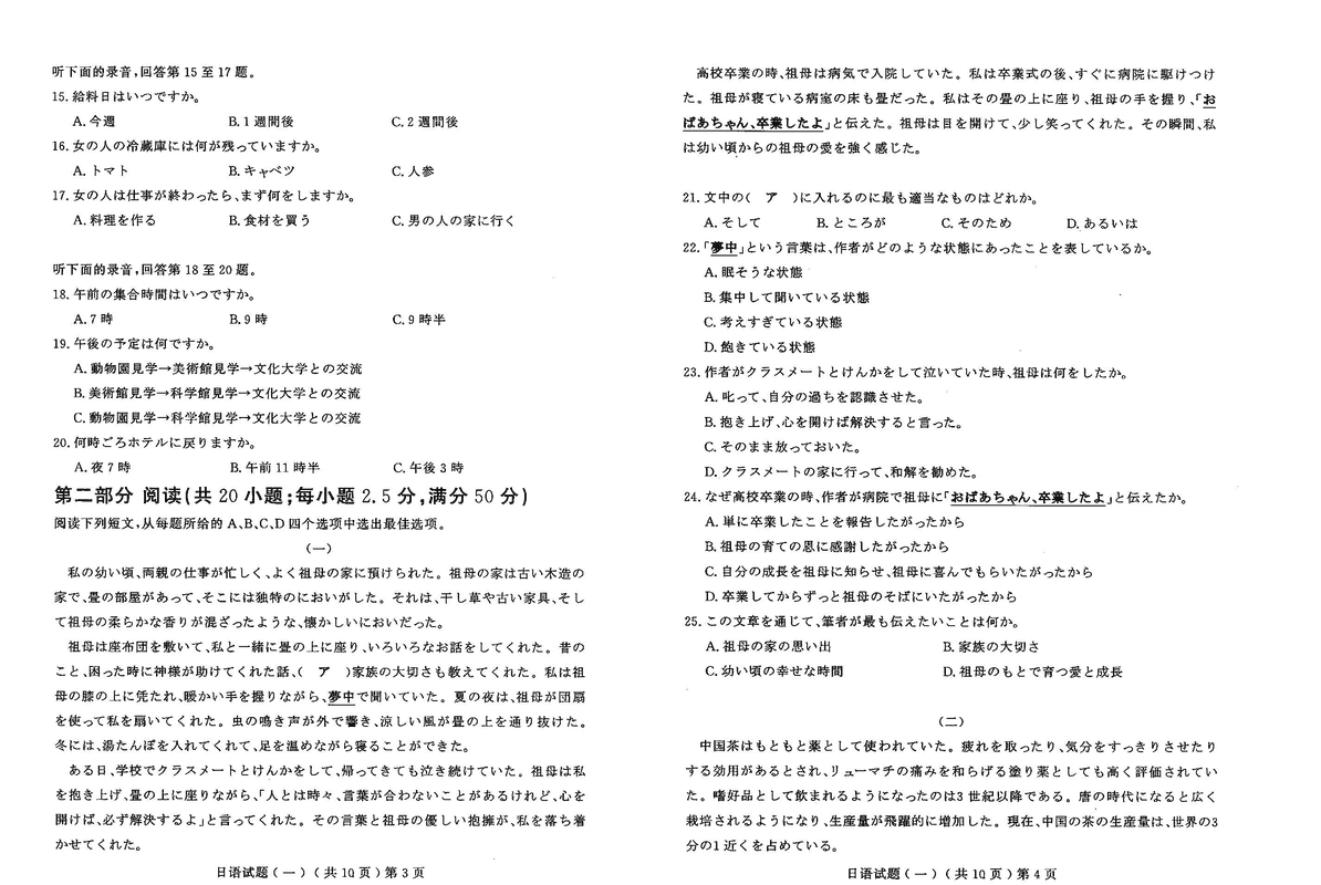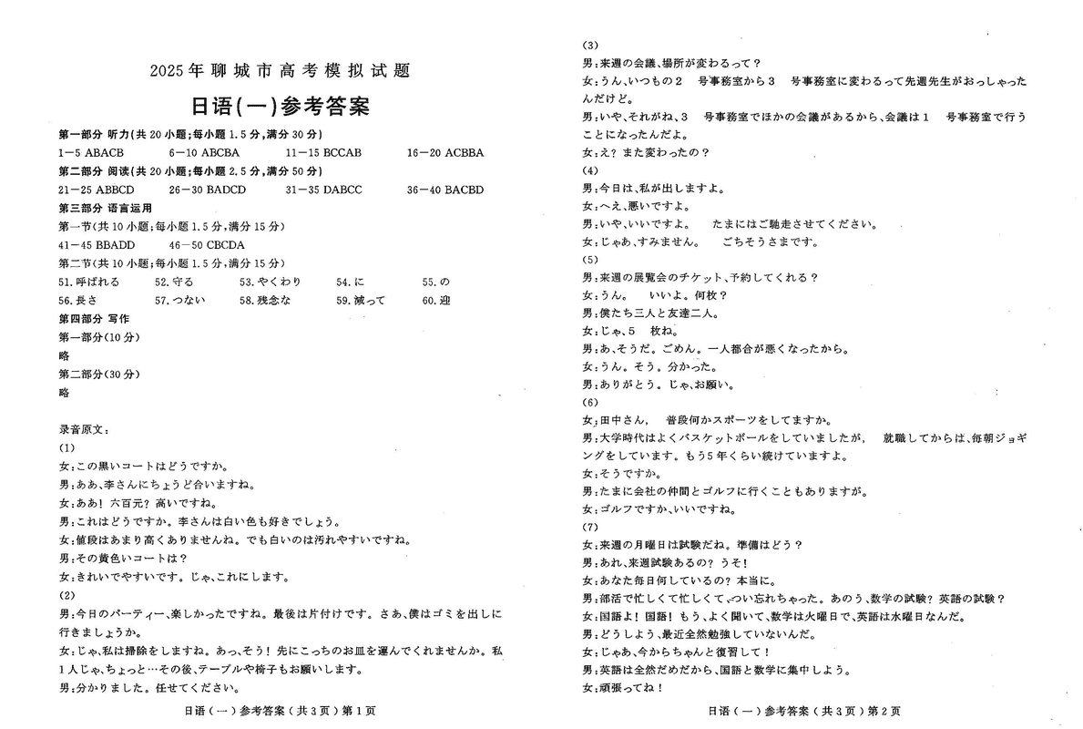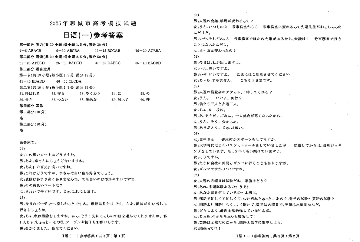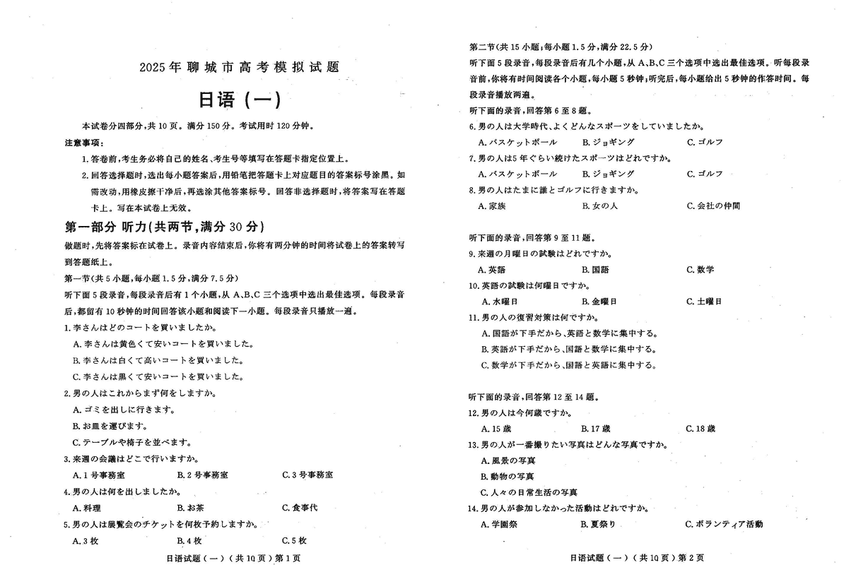 山东聊城一模2025年高三学业水平等级模拟卷日语考试已于近日开考,为方便考生考后及时查看考试情况,查漏补缺、弥补不足,本文整理了试题答案解析相关信息!