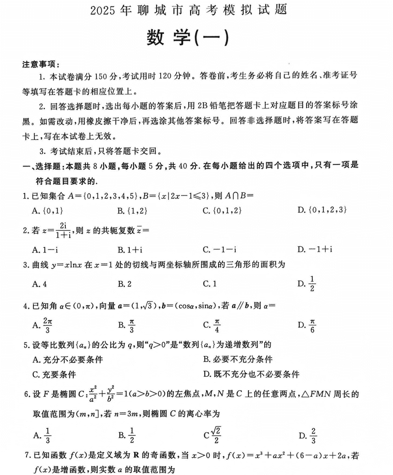 山东聊城一模2025年高三学业水平等级模拟卷数学考试已于近日开考,为方便考生考后及时查看考试情况,查漏补缺、弥补不足,本文整理了试题答案解析相关信息!