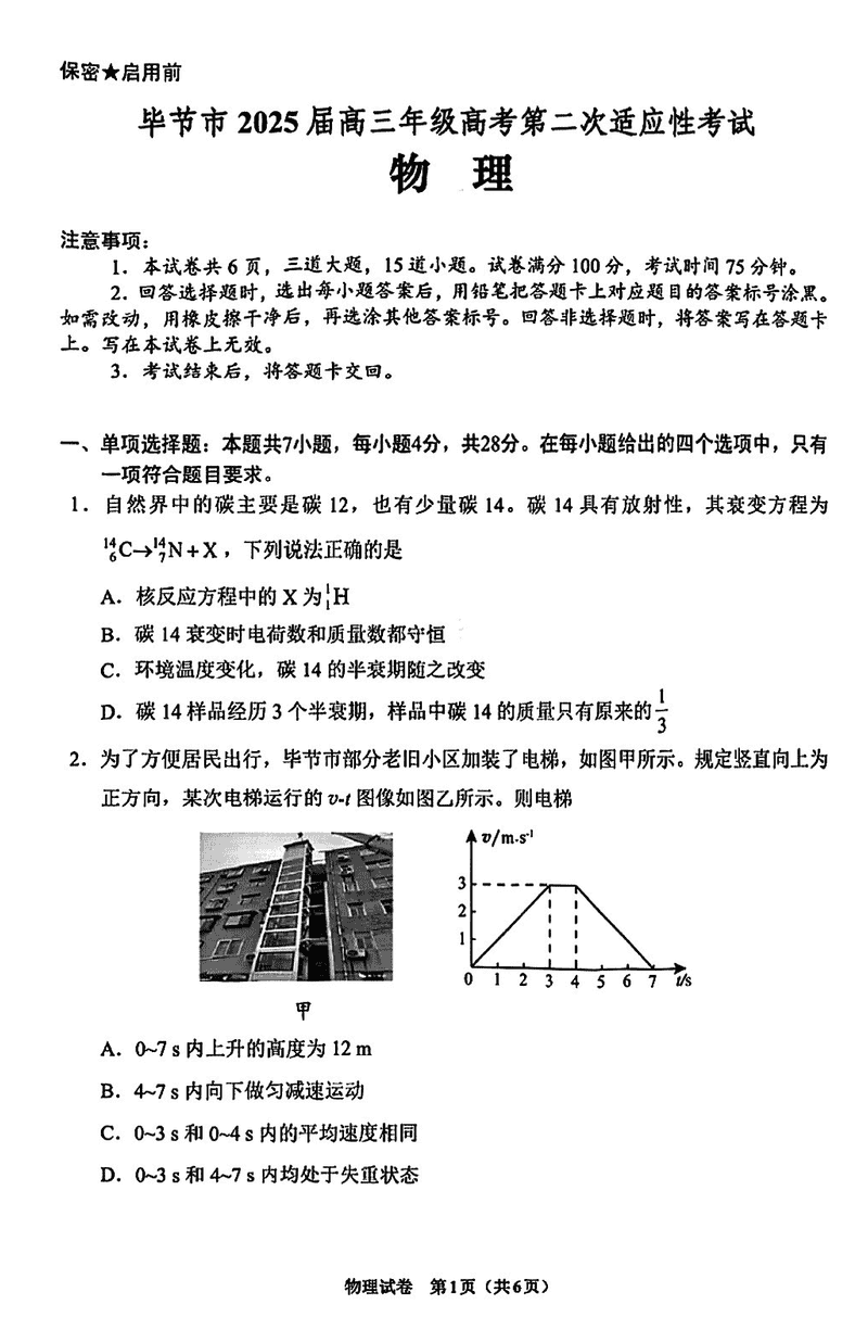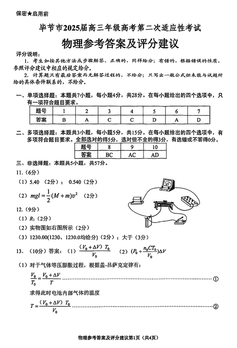 毕节二诊2025届高三第二次适应性物理试题及答案 时间:2025-03-12 贵州 理综试题 毕节二诊2025届高三第二次适应性物理考试已于近日开考,为方便考生考后及时查看考试情况,查漏补缺、弥补不足,本文整理了试题答案解析相关信息! 汇总:毕节二诊2025届高三第二次适应性考试试题及答案汇总 物理试题及答案解析