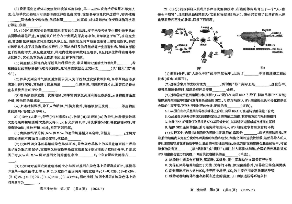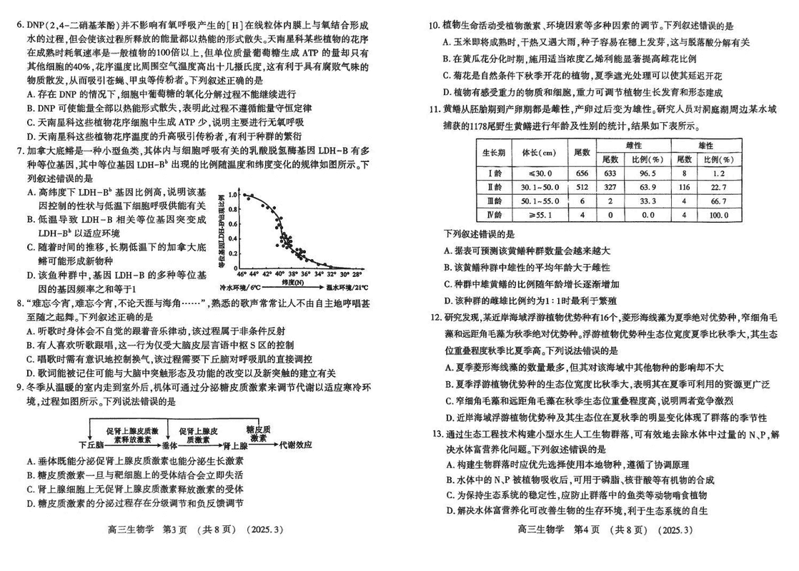 豫西北教研联盟(洛平许济)2025年高三下学期第二次质量检测生物试题及答案