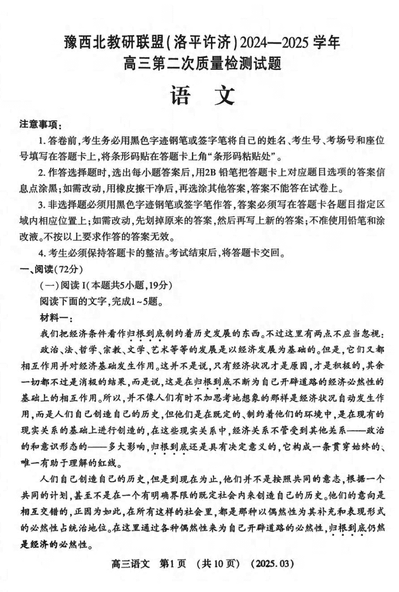 河南豫西北教研联盟(洛平许济)2025年高三下学期第二次质量检测语文考试已于近日开考,为方便考生考后及时查看考试情况,查漏补缺、弥补不足,本文整理了试题答案解析相关信息!