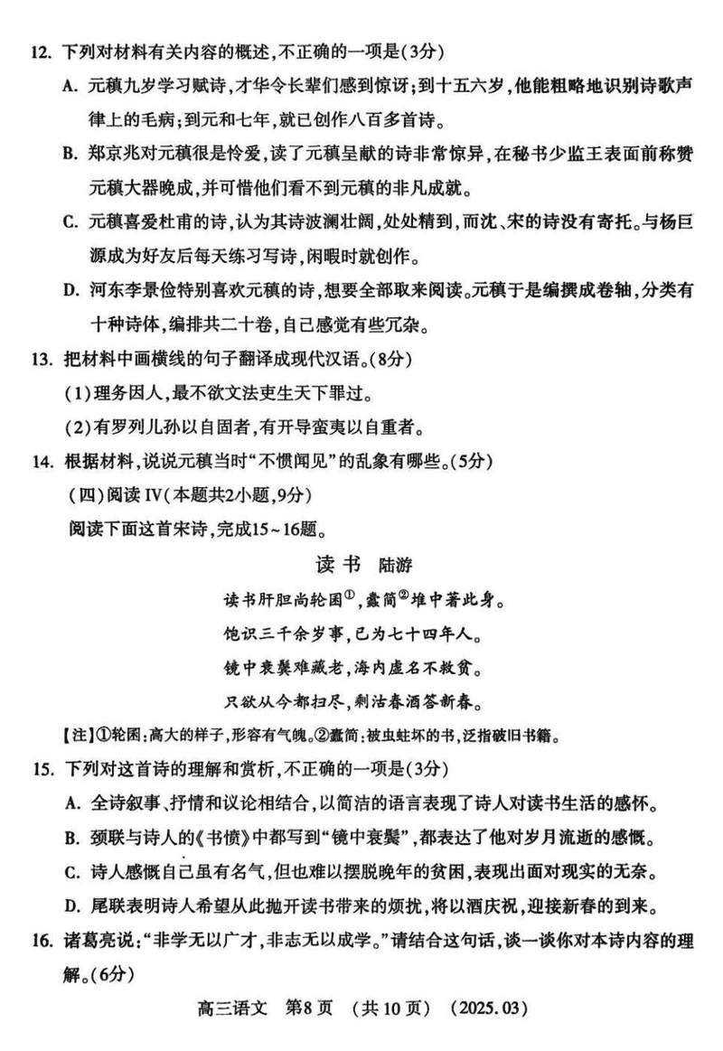 豫西北教研联盟(洛平许济)2025年高三下学期第二次质量检测语文试题及答案