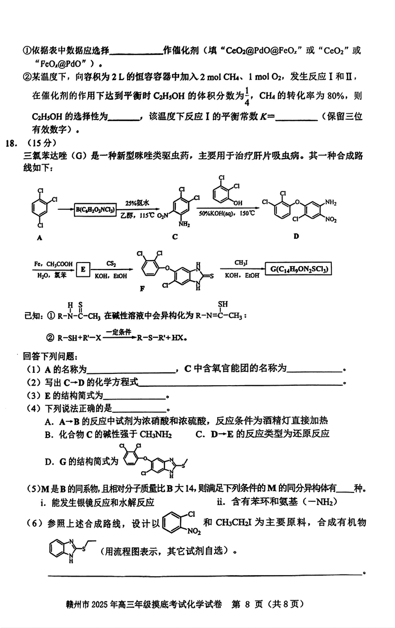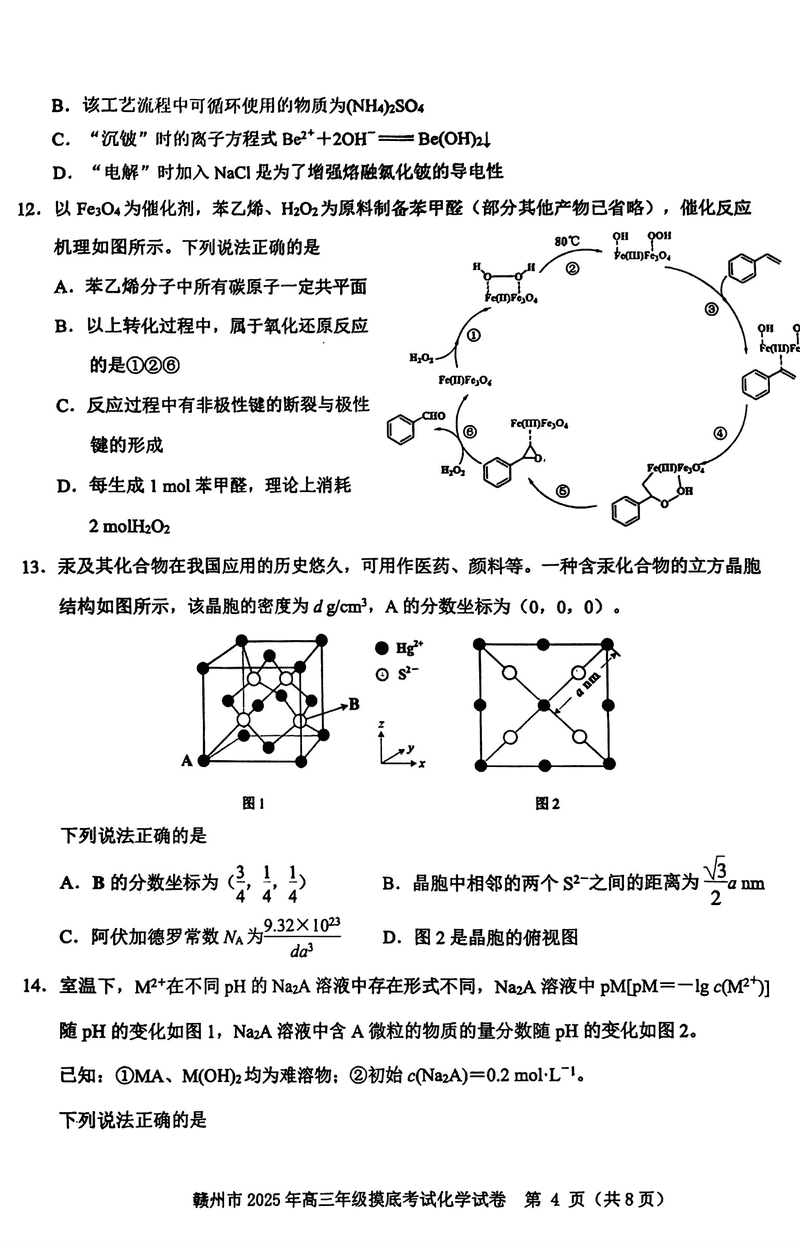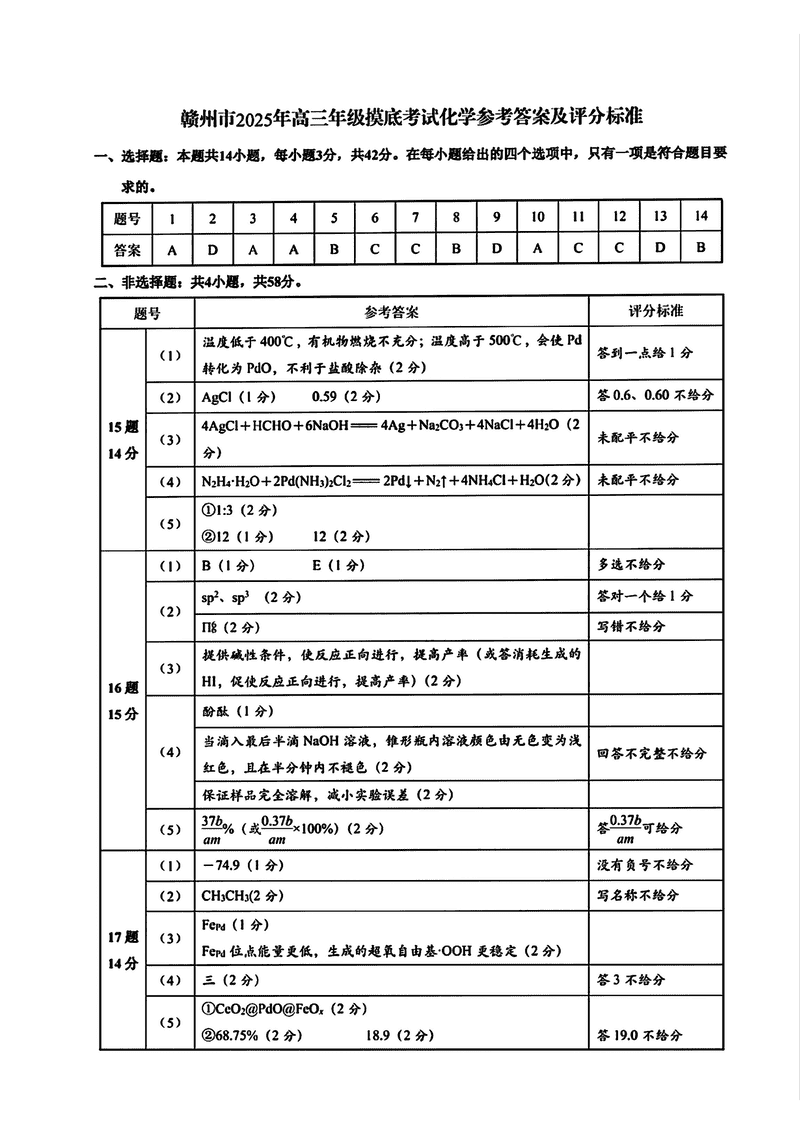 2025届江西赣州高三下学期3月一模化学试题及答案 时间:2025-03-12 江西 理综试题 2025届江西赣州高三下学期3月一模化学考试已于近日开考,为方便考生考后及时查看考试情况,查漏补缺、弥补不足,本文整理了试题答案解析相关信息! 汇总:2025届江西赣州高三下学期3月一模试题及答案汇总 化学试题及答案解析
