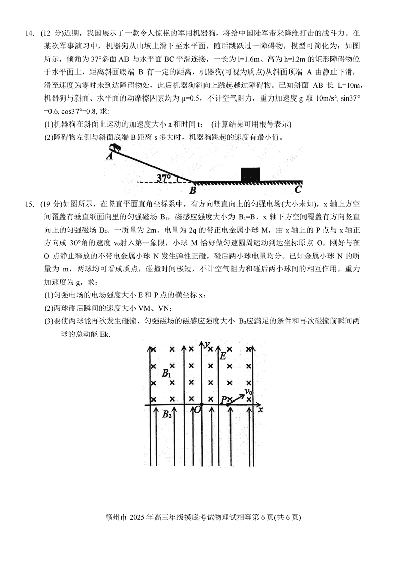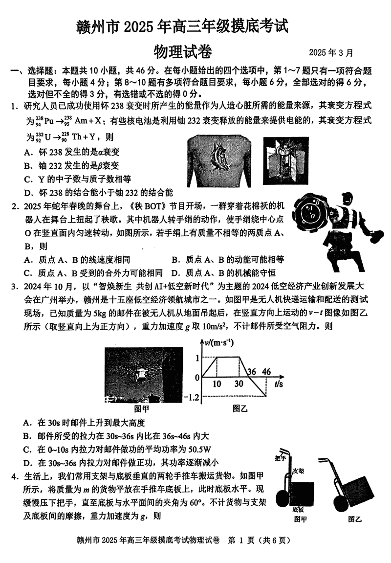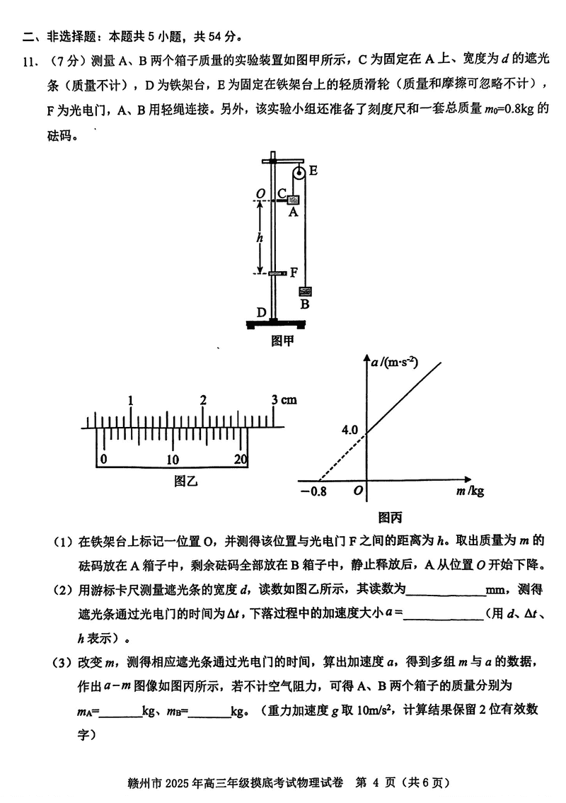 2025届江西赣州高三下学期3月一模物理试题及答案 时间:2025-03-12 江西 理综试题 2025届江西赣州高三下学期3月一模物理考试已于近日开考,为方便考生考后及时查看考试情况,查漏补缺、弥补不足,本文整理了试题答案解析相关信息! 汇总:2025届江西赣州高三下学期3月一模试题及答案汇总 物理试题及答案解析