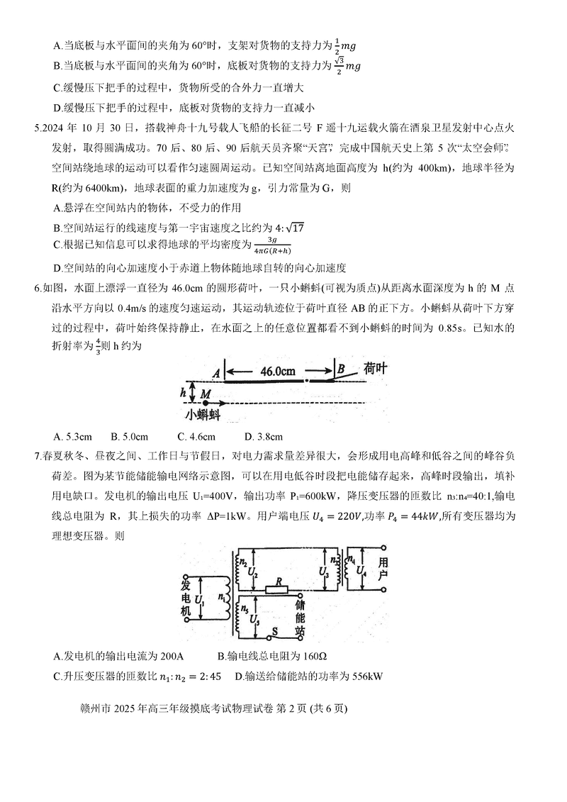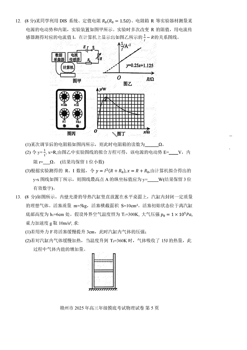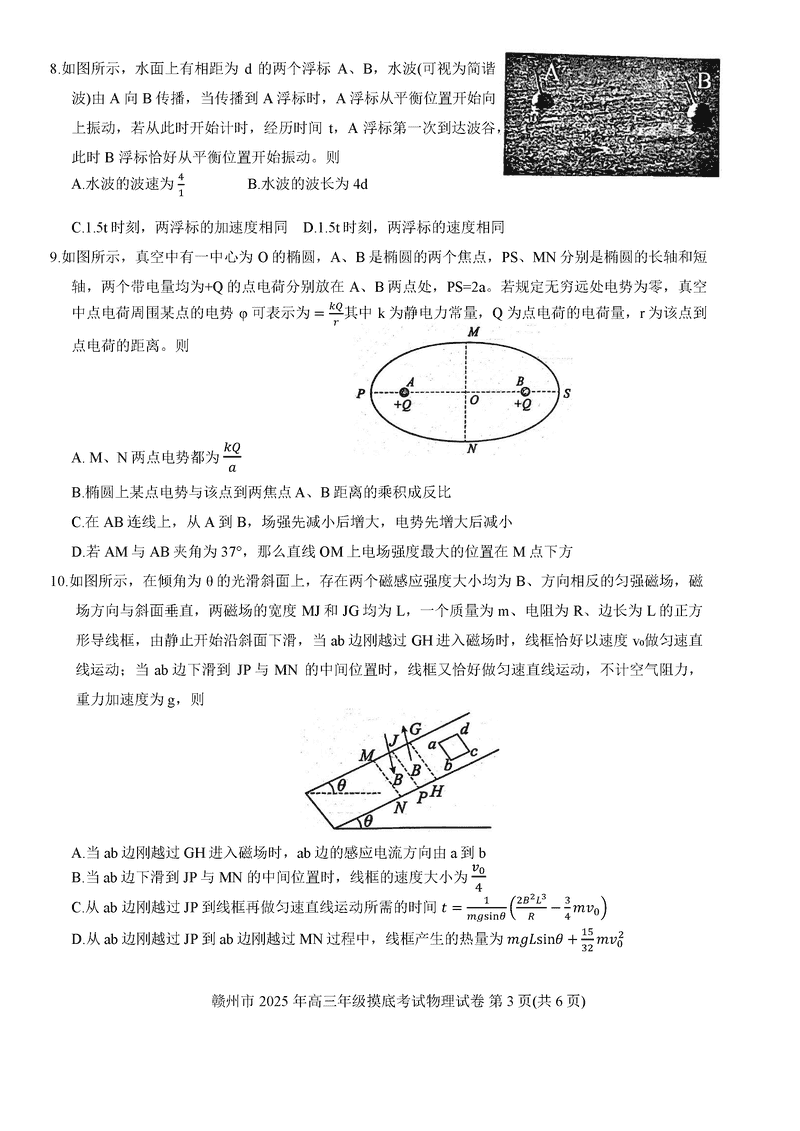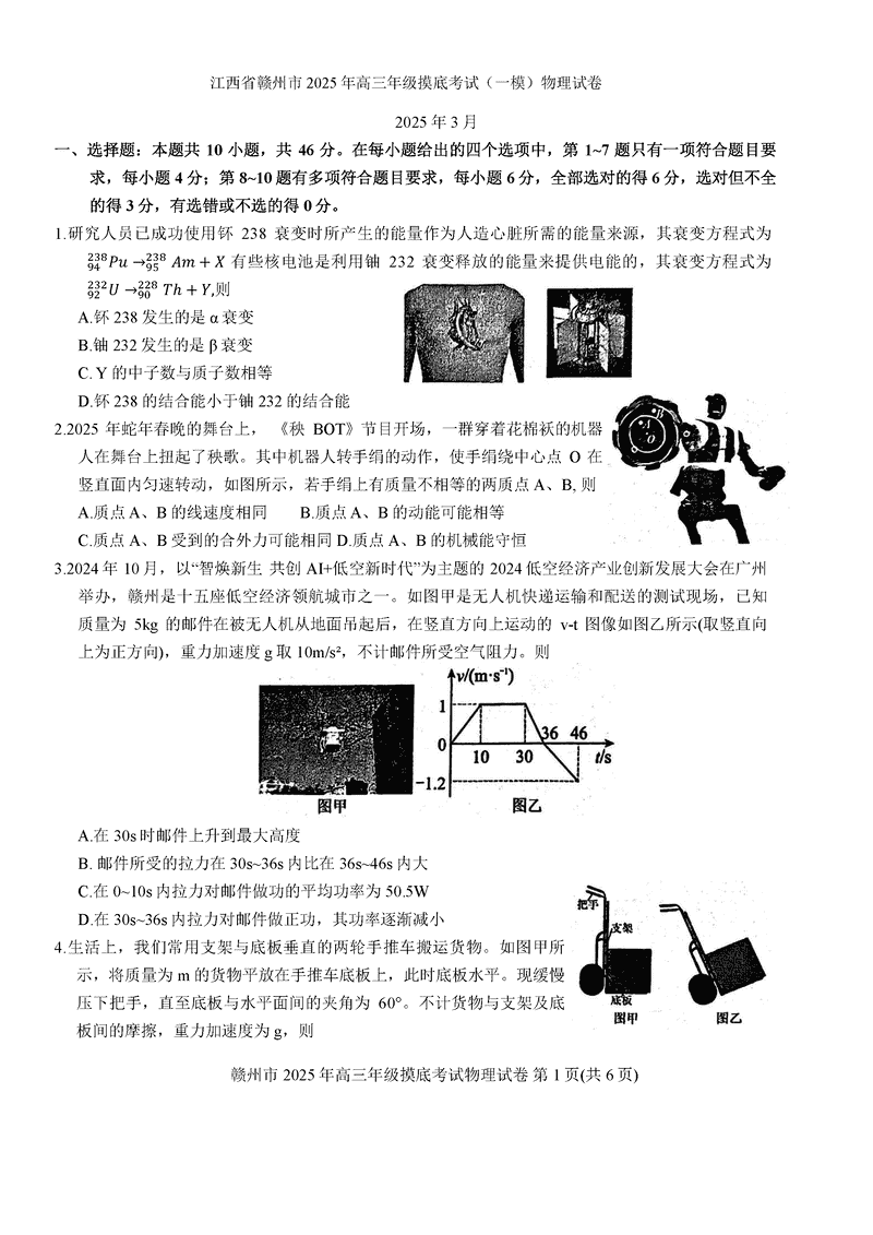 2025届江西赣州高三下学期3月一模物理试题及答案 时间:2025-03-12 江西 理综试题 2025届江西赣州高三下学期3月一模物理考试已于近日开考,为方便考生考后及时查看考试情况,查漏补缺、弥补不足,本文整理了试题答案解析相关信息! 汇总:2025届江西赣州高三下学期3月一模试题及答案汇总 物理试题及答案解析