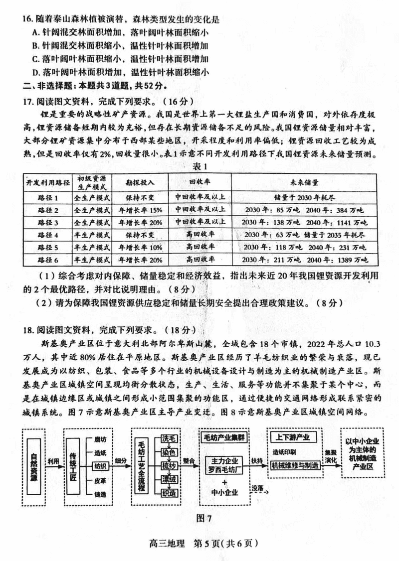 2025届石家庄市高三教学质量检测(一)地理试题及答案