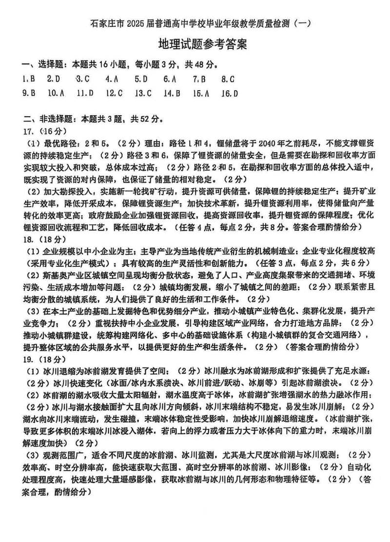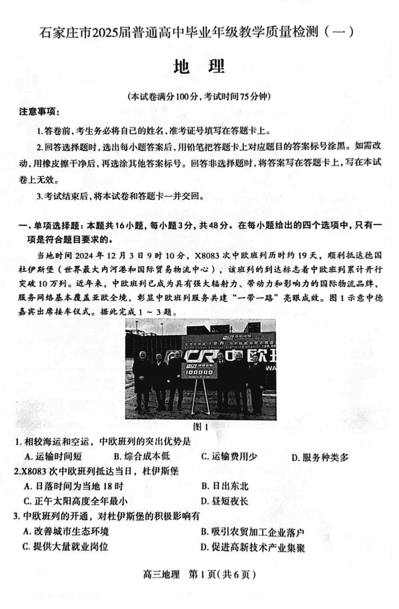 2025届石家庄市高三教学质量检测(一)地理考试已于近日开考,为方便考生考后及时查看考试情况,查漏补缺、弥补不足,本文整理了试题答案解析相关信息!
