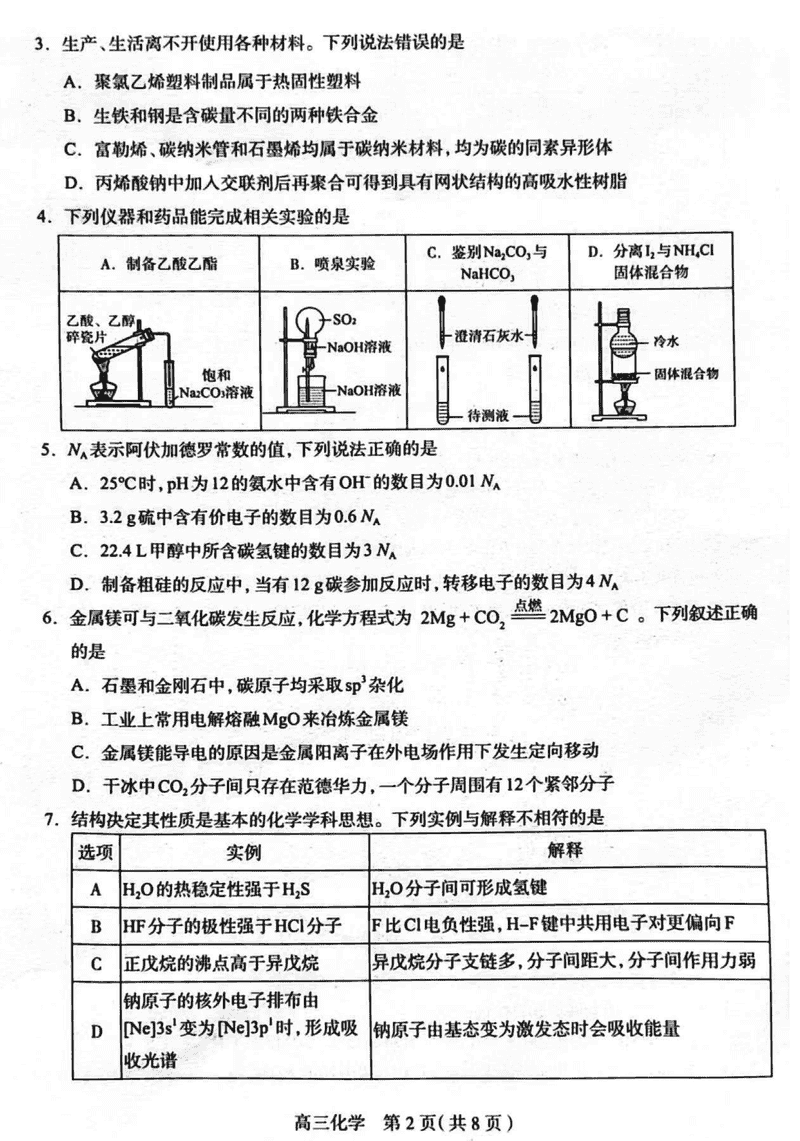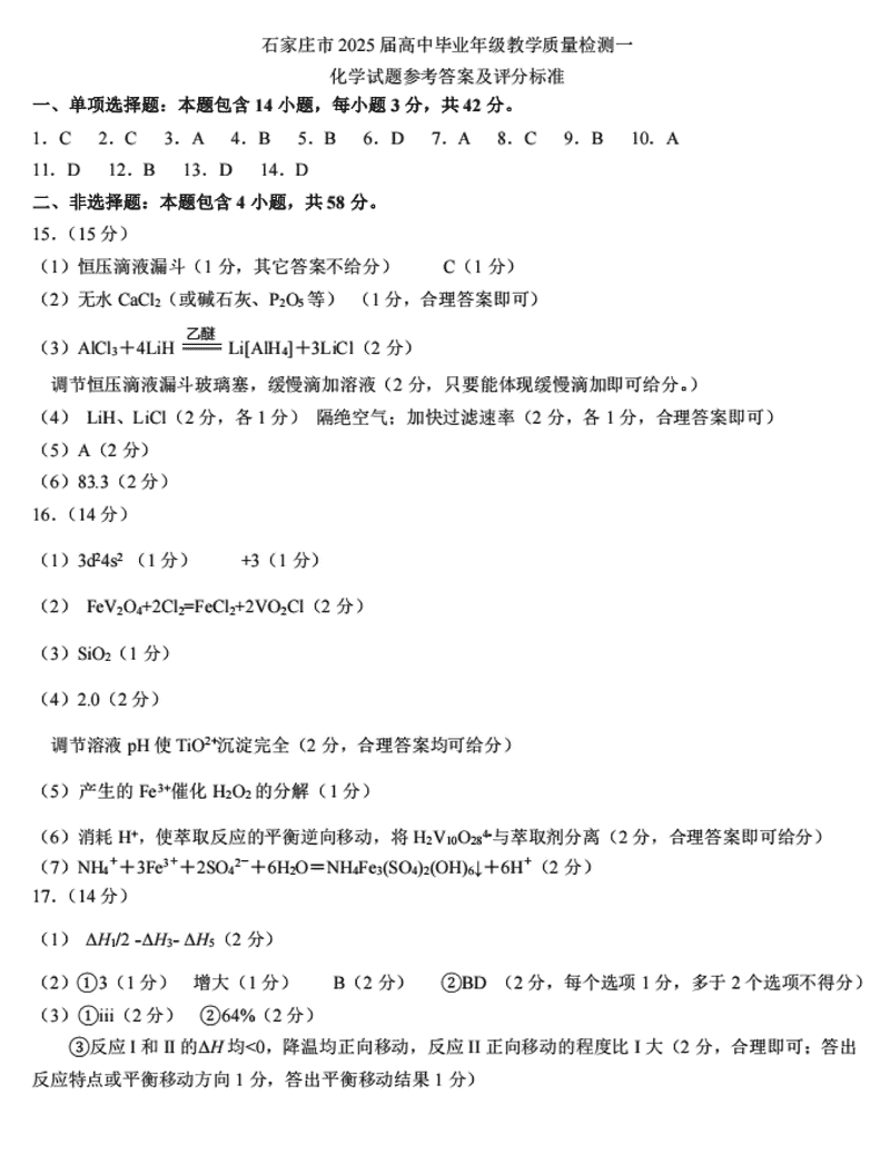 2025届石家庄市高三教学质量检测(一)化学考试已于近日开考,为方便考生考后及时查看考试情况,查漏补缺、弥补不足,本文整理了试题答案解析相关信息!