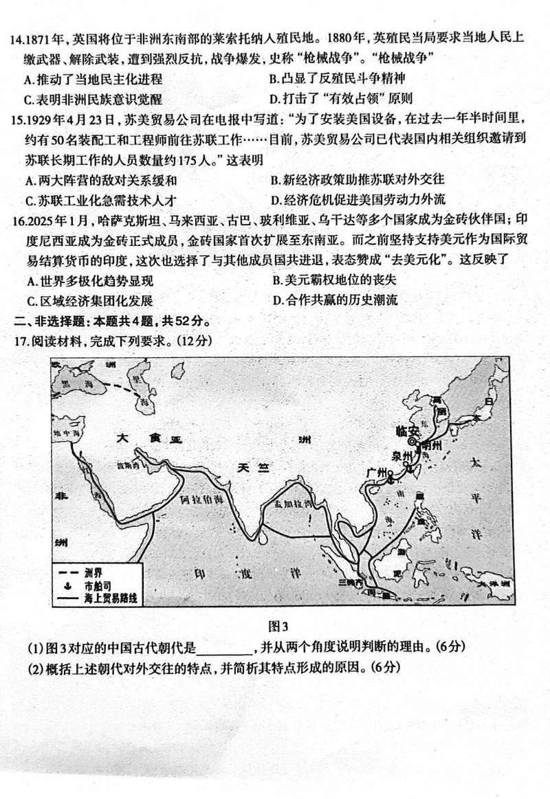 2025届石家庄市高三教学质量检测(一)历史考试已于近日开考,为方便考生考后及时查看考试情况,查漏补缺、弥补不足,本文整理了试题答案解析相关信息!