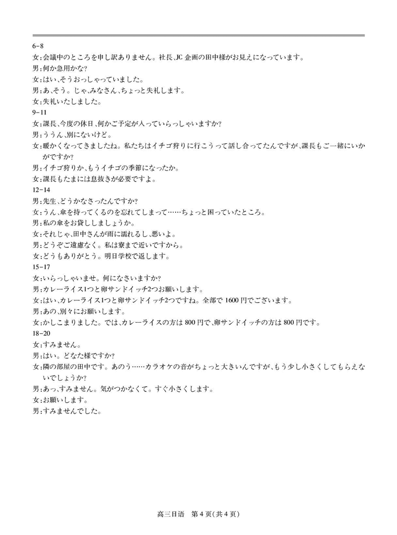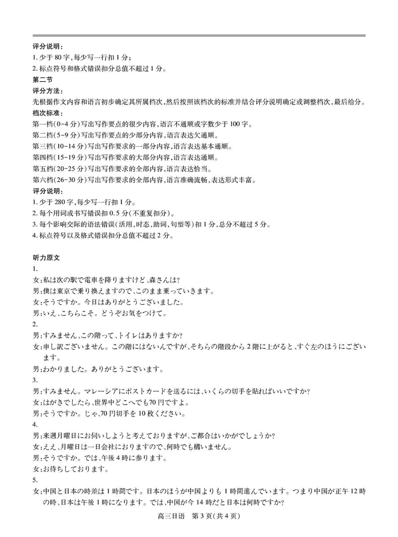 江西上进联考2024-2025学年高三下学期3月二轮统一调研测日语试题及答案