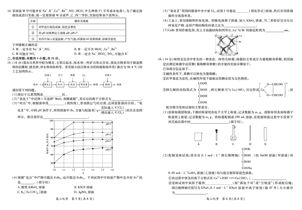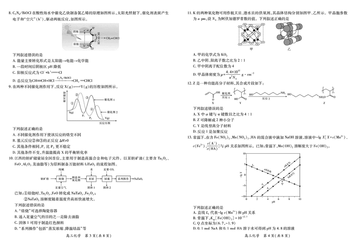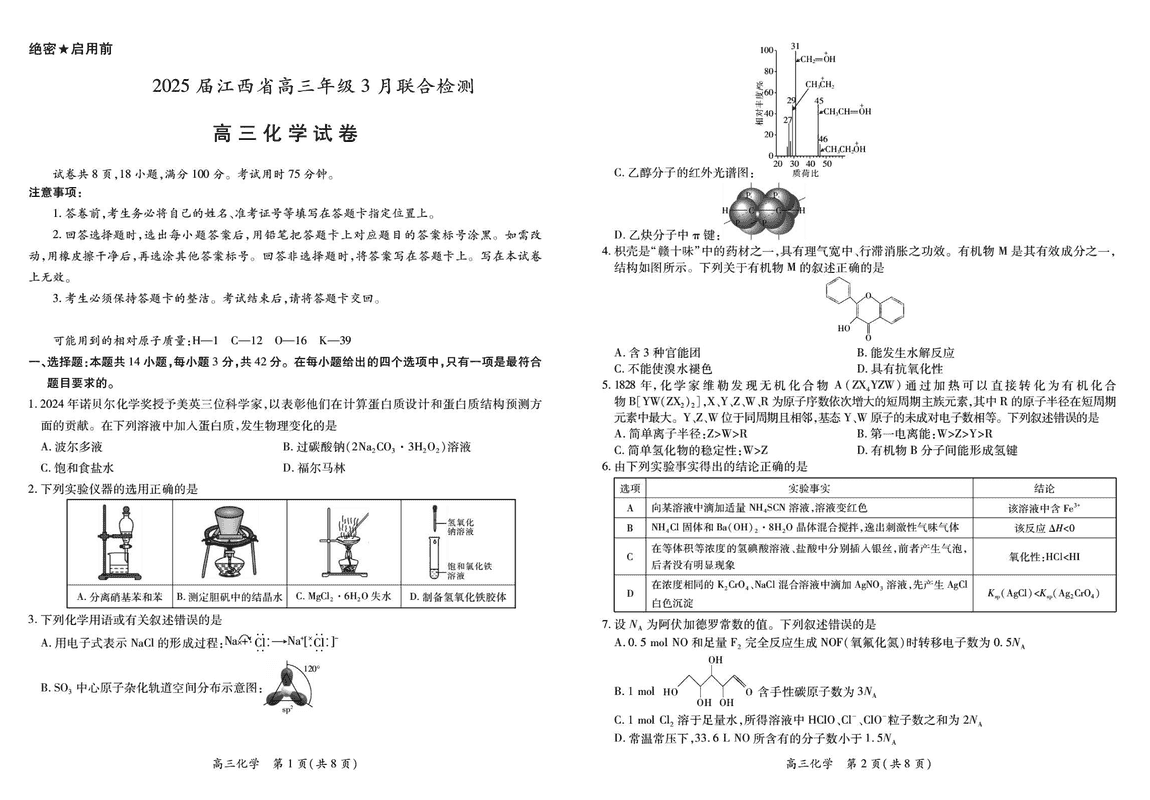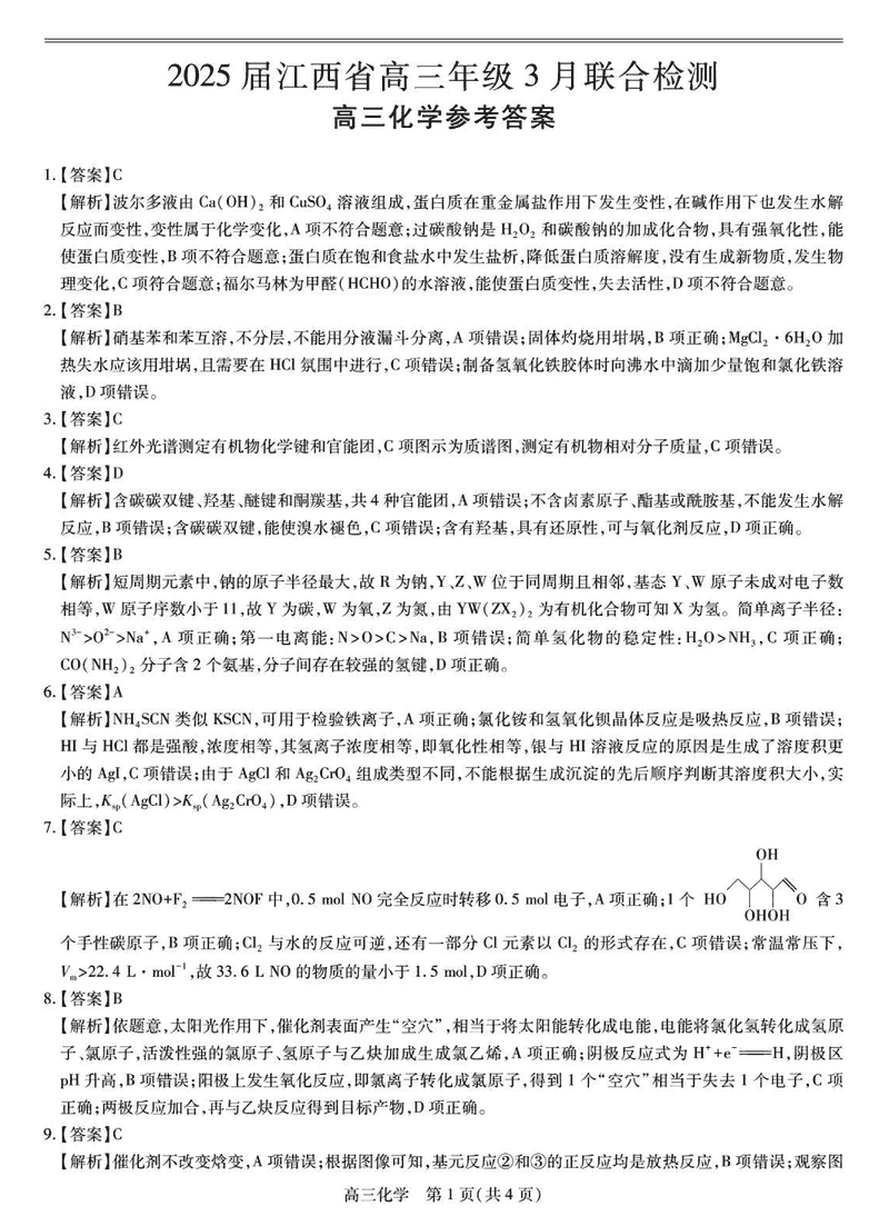 江西省上进联考2024-2025学年高三下学期3月二轮统一调研测化学考试已于近日开考,为方便考生考后及时查看考试情况,查漏补缺、弥补不足,本文整理了试题答案解析相关信息!