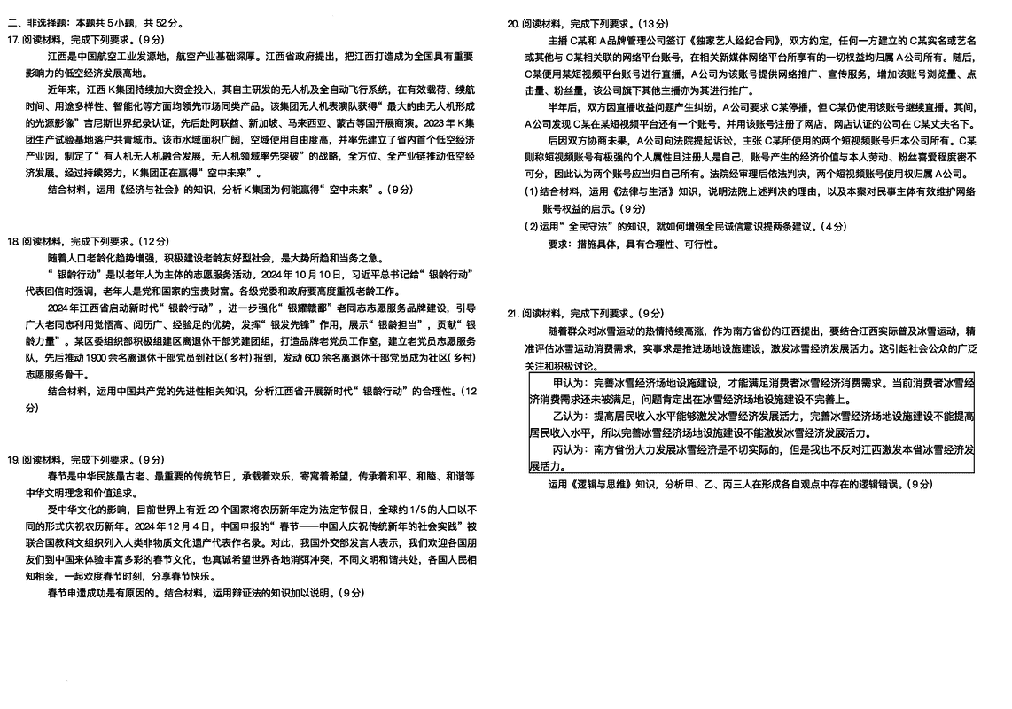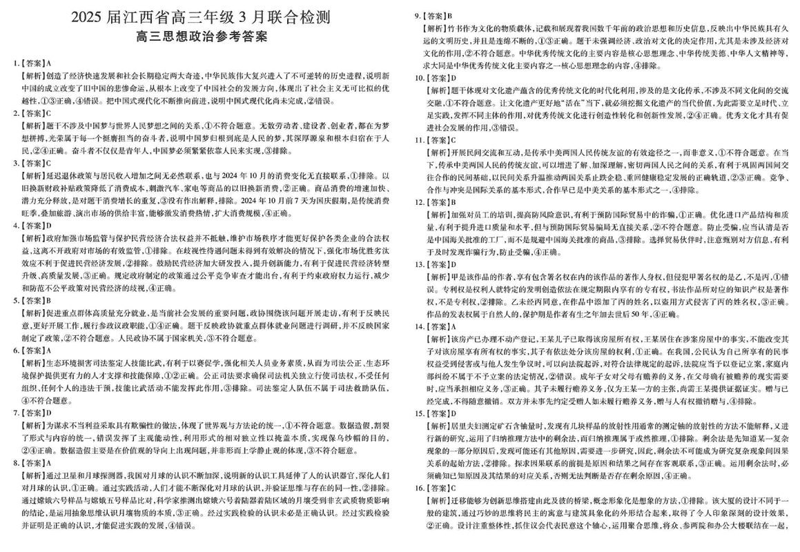 江西省上进联考2024-2025学年高三下学期3月二轮统一调研测政治考试已于近日开考,为方便考生考后及时查看考试情况,查漏补缺、弥补不足,本文整理了试题答案解析相关信息!