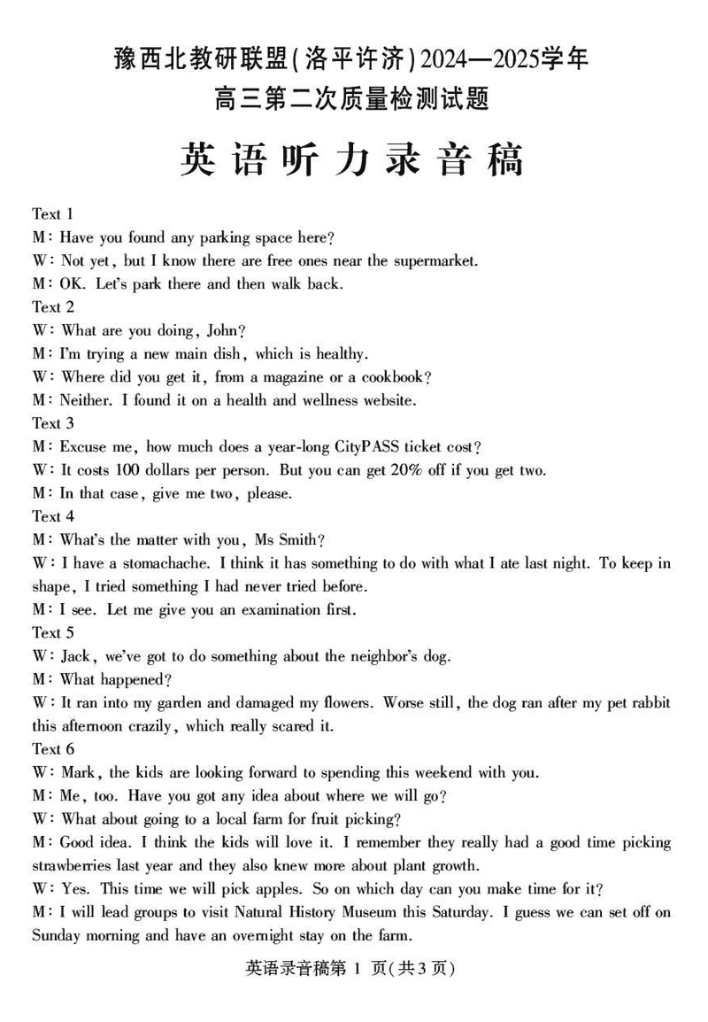 河南豫西北教研联盟(洛平许济)2025年高三下学期第二次质量检测英语考试已于近日开考,为方便考生考后及时查看考试情况,查漏补缺、弥补不足,本文整理了试题答案解析相关信息!