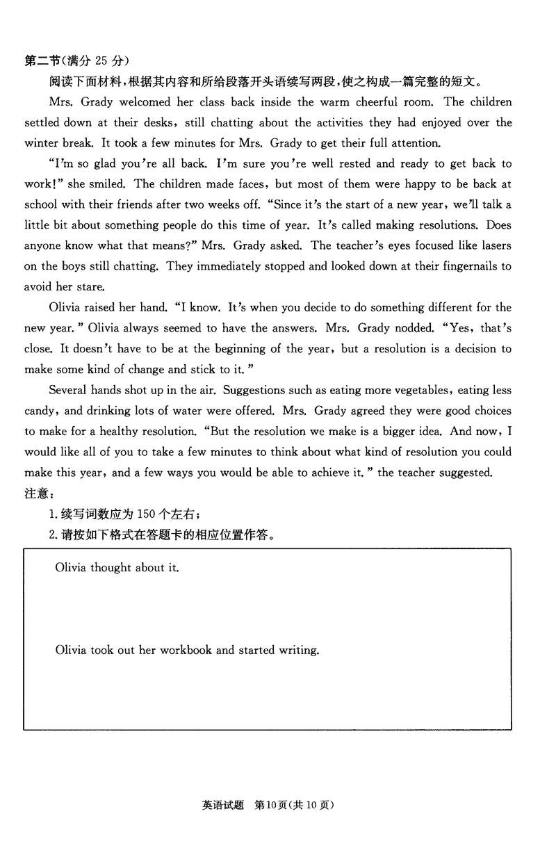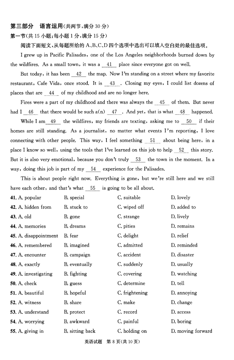 四川成都2025届高三第二次诊断性检测英语试题及答案