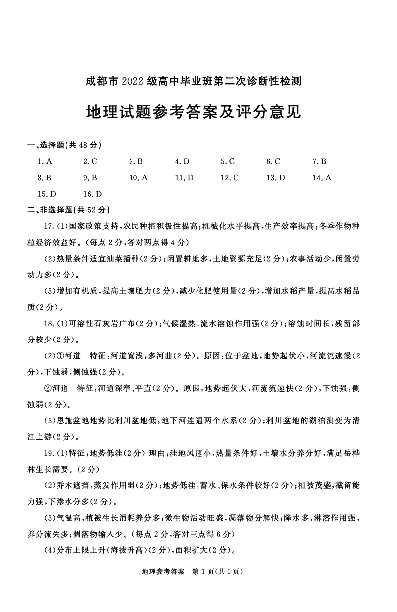 四川成都2025届高三第二次诊断性检测地理考试已于近日开考,为方便考生考后及时查看考试情况,查漏补缺、弥补不足,本文整理了试题答案解析相关信息!
