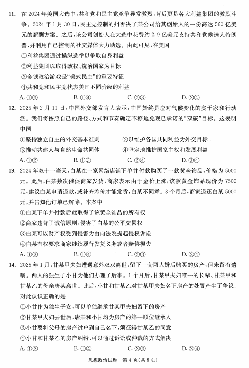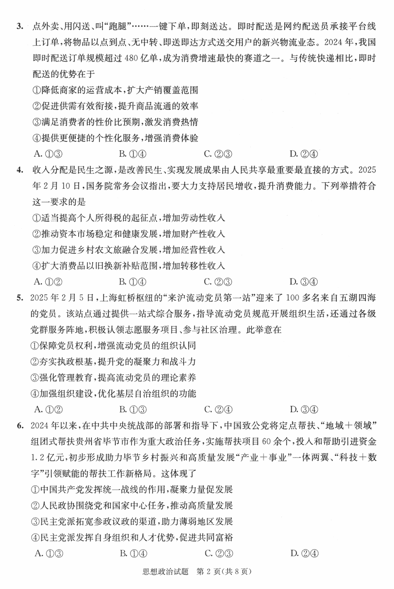 四川成都2025届高三第二次诊断性检测政治试题及答案