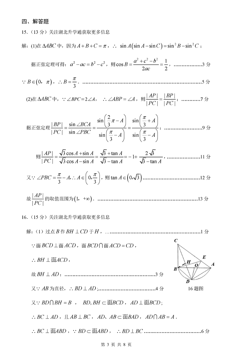 2025年湖北省七市州高三3月联合统一调研测试数学考试已于近日开考,为方便考生考后及时查看考试情况,查漏补缺、弥补不足,本文整理了试题答案解析相关信息!