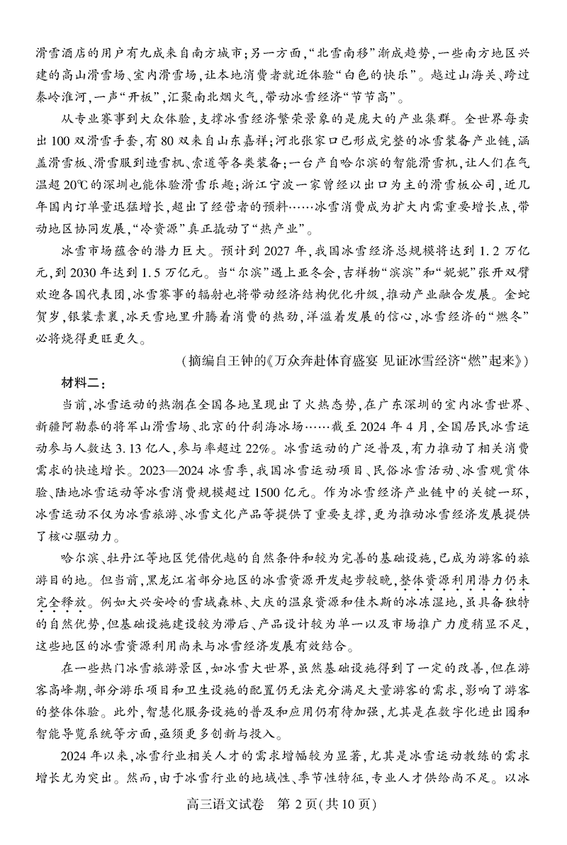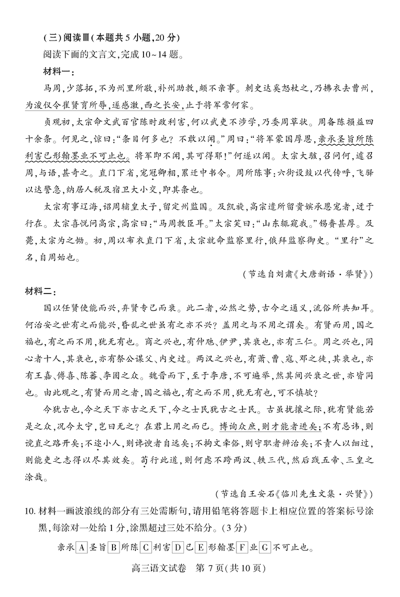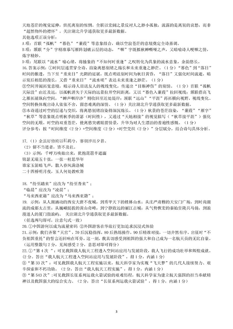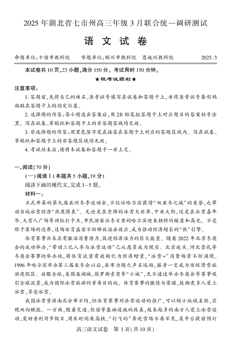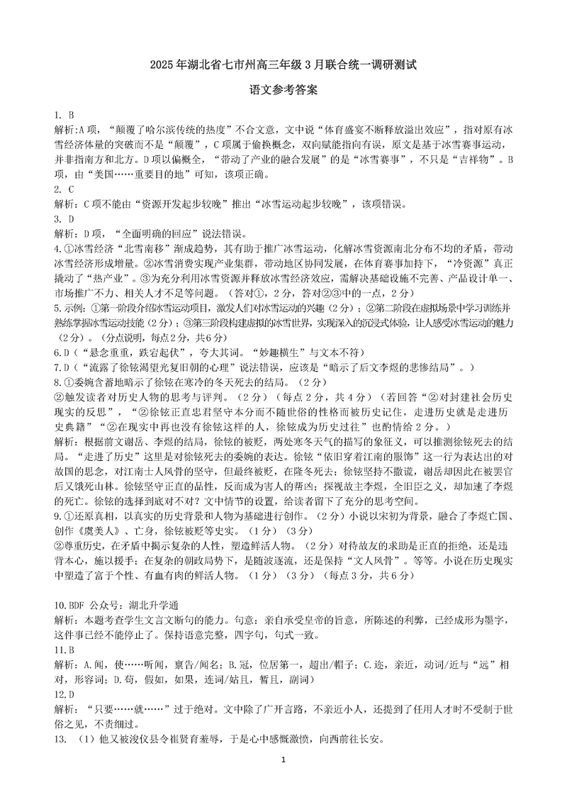 2025年湖北七市州高三3月联合统一调研测试语文试题及答案