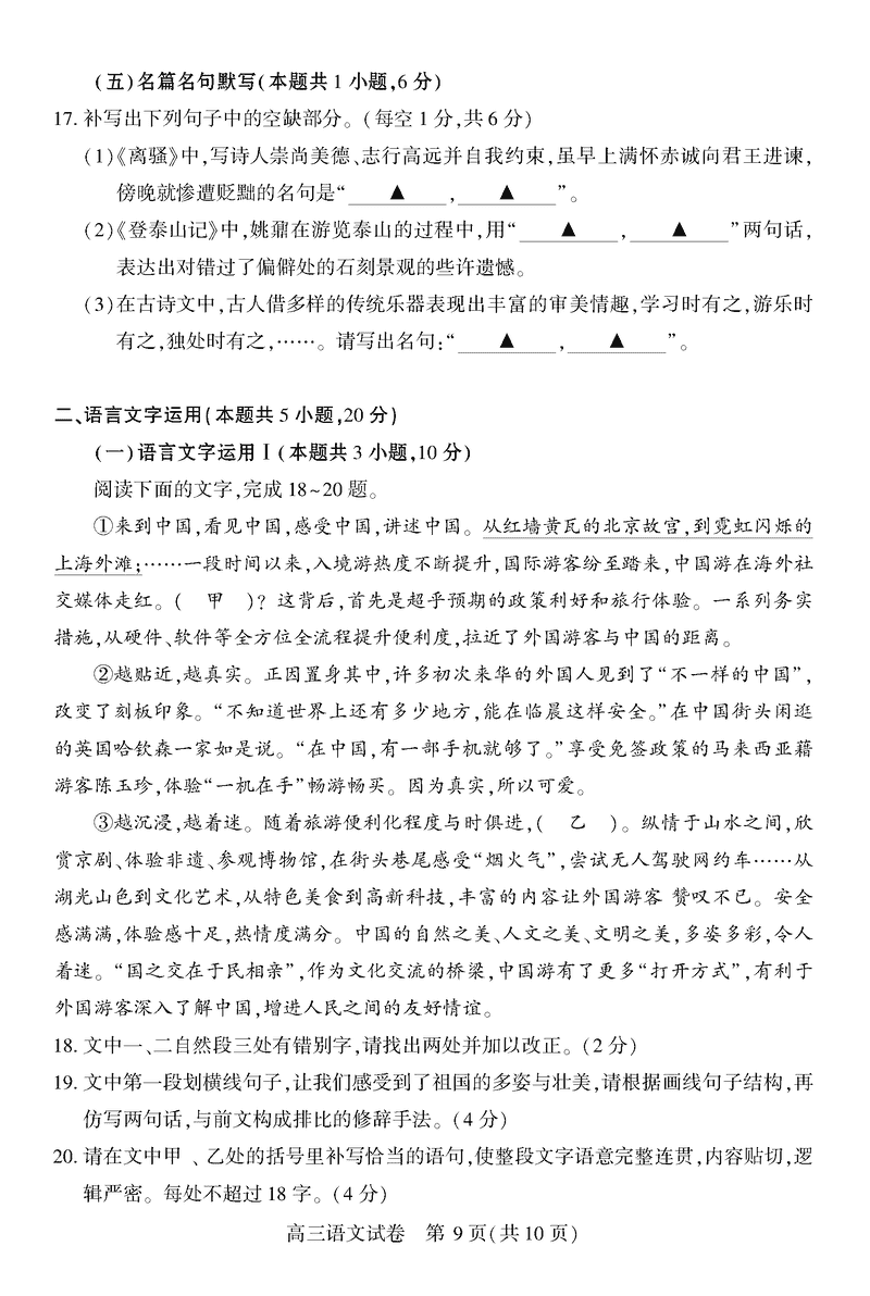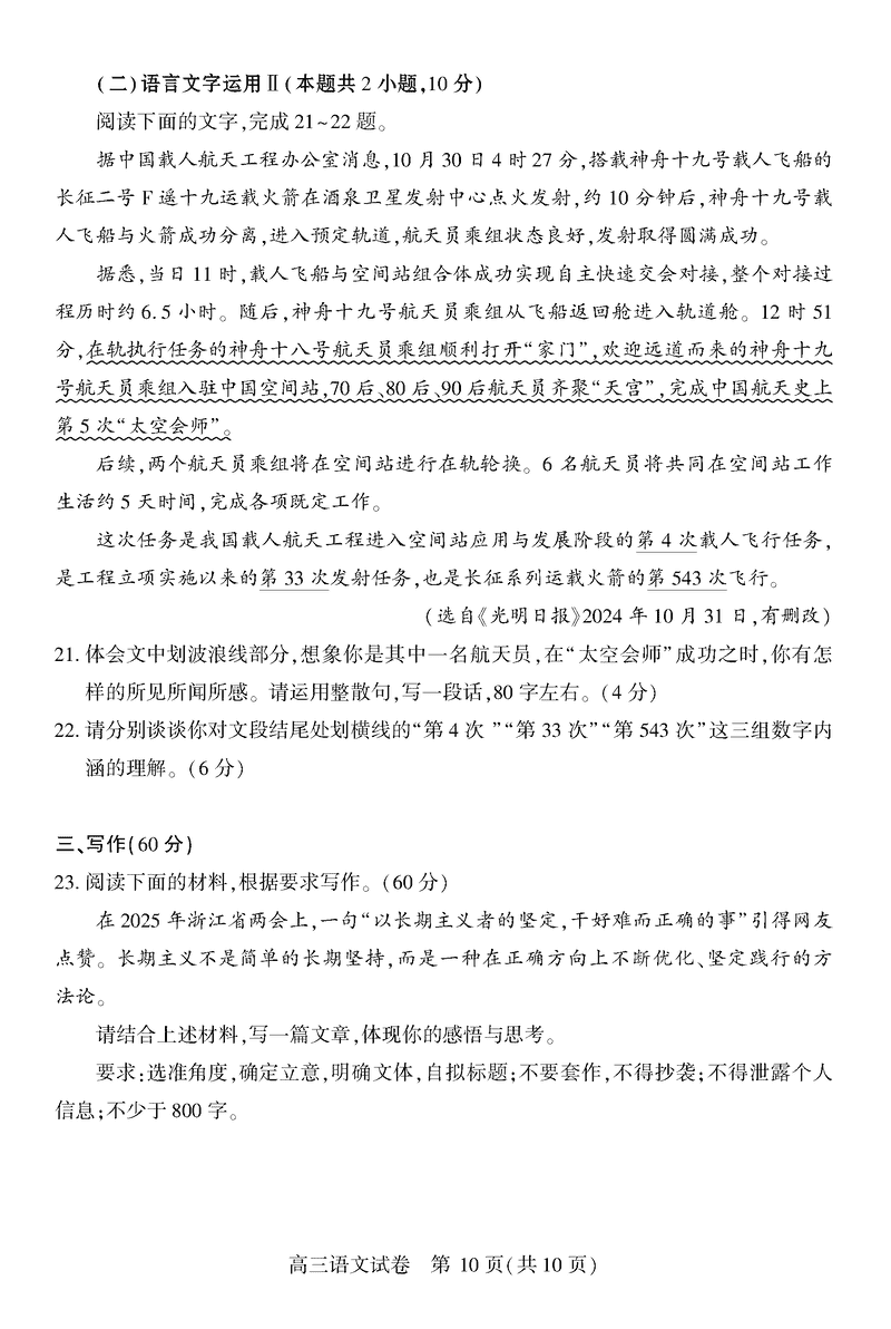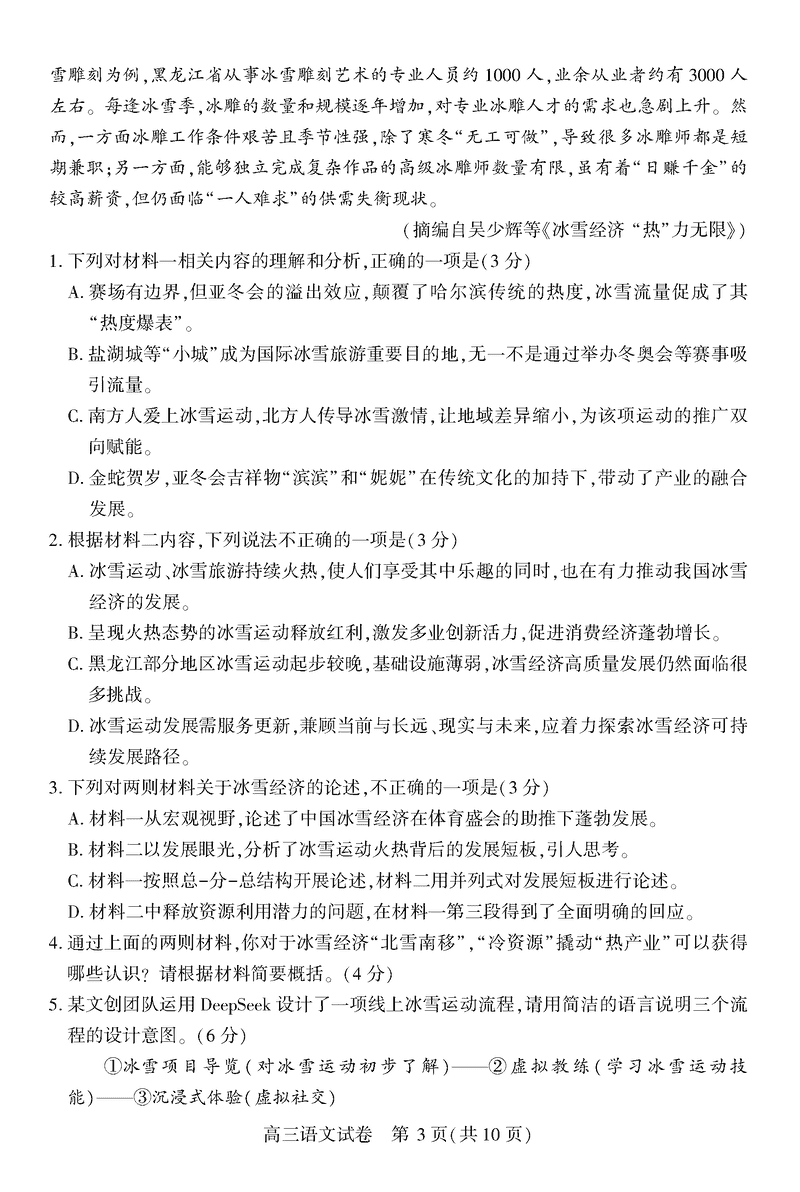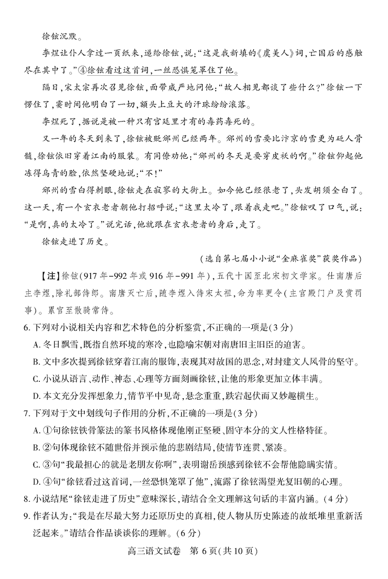 2025年湖北七市州高三3月联合统一调研测试语文试题及答案