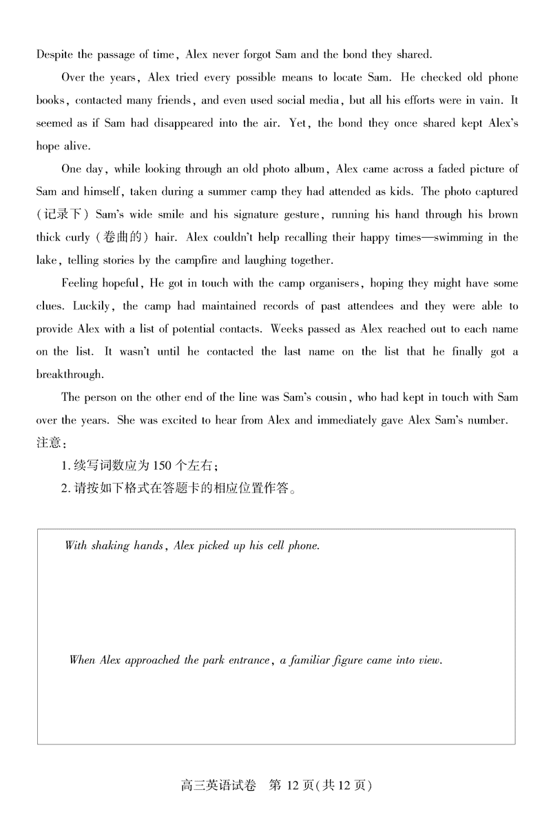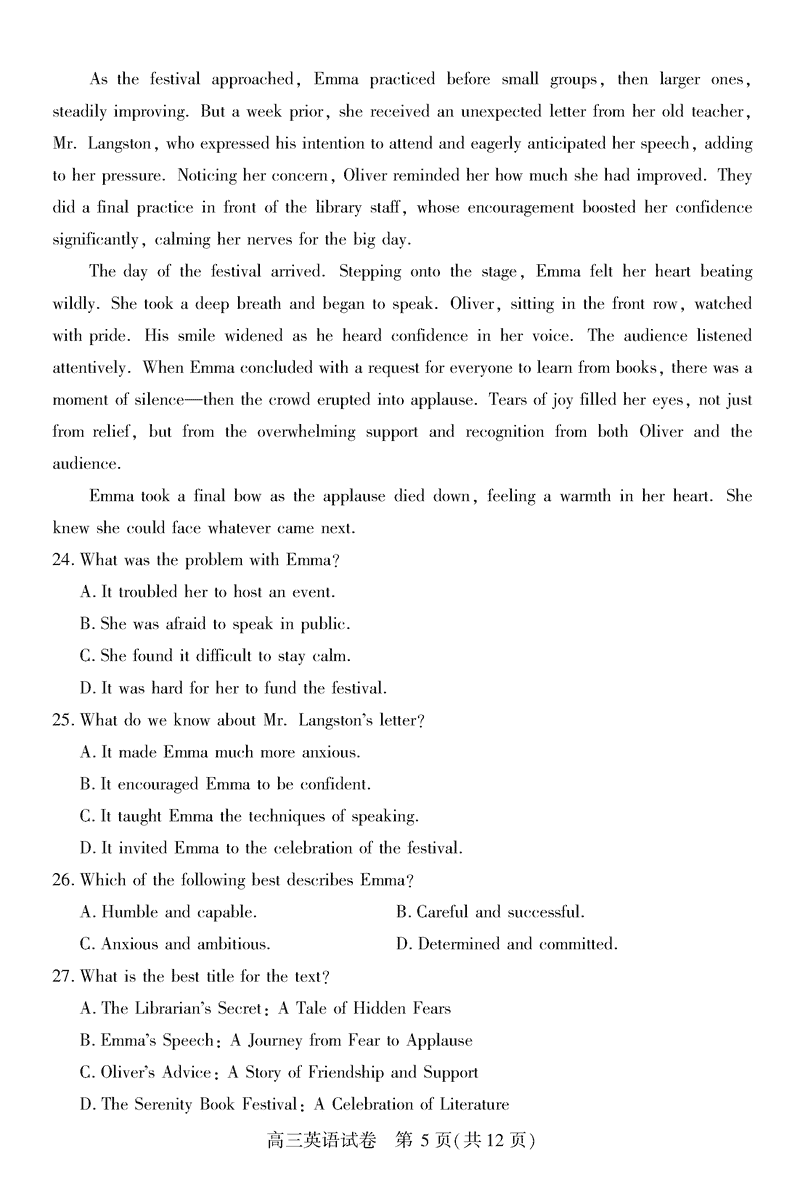 2025年湖北七市州高三3月联合统一调研测试英语试题及答案