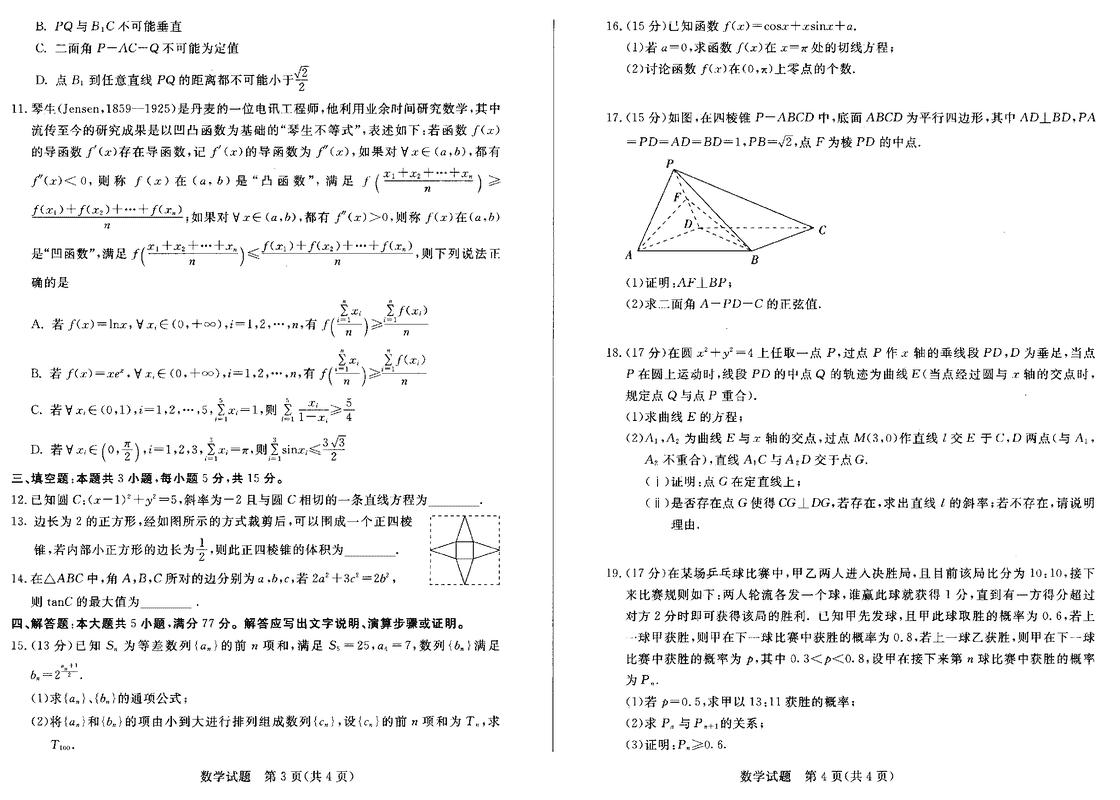 呼和浩特2025届高三一模数学试题及答案 时间:2025-03-14 内蒙 数学试题 呼和浩特2025届高三一模数学考试已于近日开考,为方便考生考后及时查看考试情况,查漏补缺、弥补不足,本文整理了试题答案解析相关信息! 汇总:呼和浩特市2025届高三第一次模拟考试试题及答案汇总 数学试题及答案解析