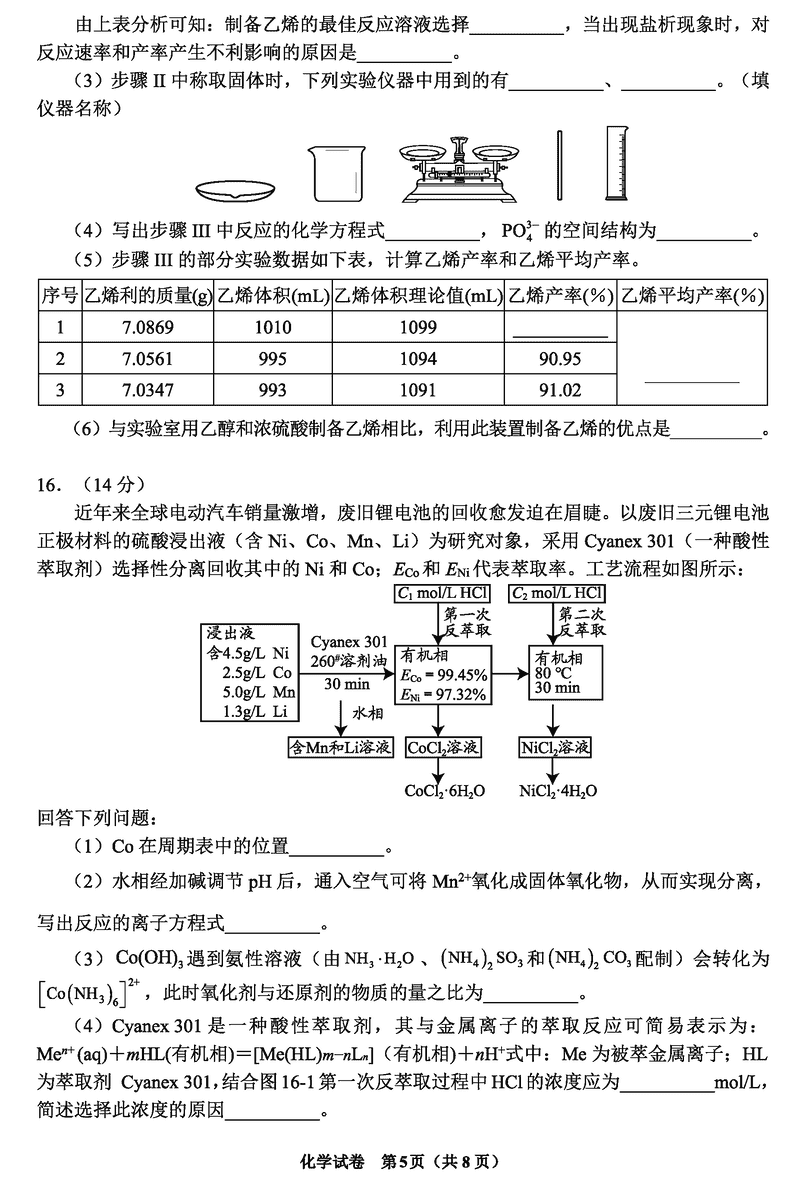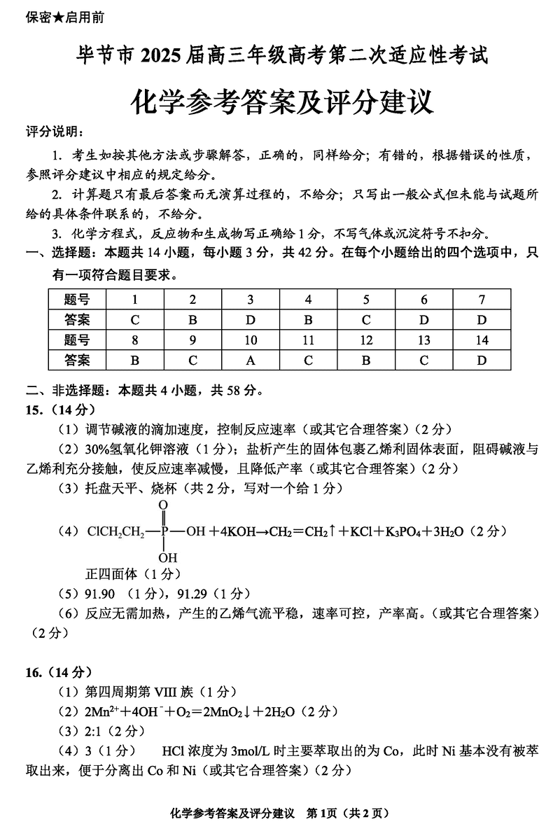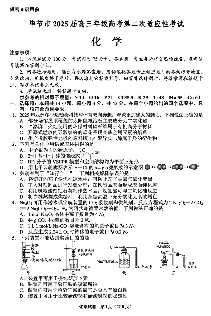 毕节二诊2025届高三第二次适应性化学试题及答案 时间:2025-03-14 贵州 理综试题 毕节二诊2025届高三第二次适应性化学考试已于近日开考,为方便考生考后及时查看考试情况,查漏补缺、弥补不足,本文整理了试题答案解析相关信息! 汇总:毕节二诊2025届高三第二次适应性考试试题及答案汇总 化学试题及答案解析