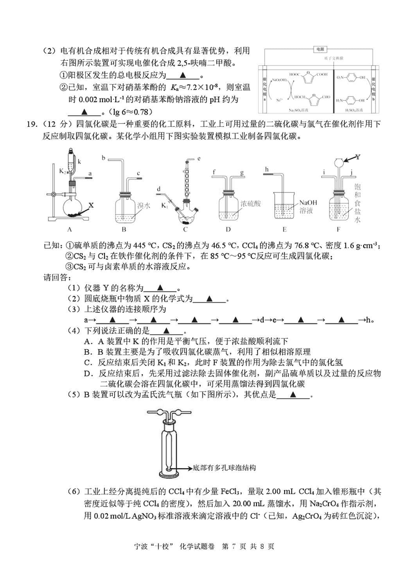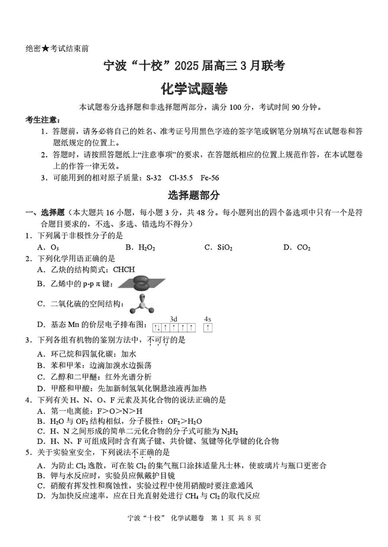 宁波十校2025届高三3月联考化学试题及答案 时间:2025-03-15 浙江 理综试题 宁波十校2025届高三3月联考化学考试已于近日开考,为方便考生考后及时查看考试情况,查漏补缺、弥补不足,本文整理了试题答案解析相关信息! 汇总:宁波十校2025届高三3月联考试题及答案汇总 化学试题及答案解析