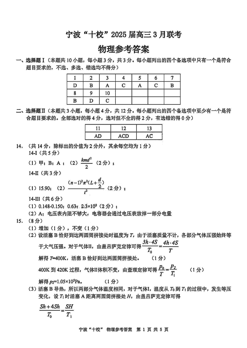 宁波十校2025届高三3月联考物理试题及答案 时间:2025-03-15 浙江 理综试题 宁波十校2025届高三3月联考物理考试已于近日开考,为方便考生考后及时查看考试情况,查漏补缺、弥补不足,本文整理了试题答案解析相关信息! 汇总:宁波十校2025届高三3月联考试题及答案汇总 物理试题及答案解析