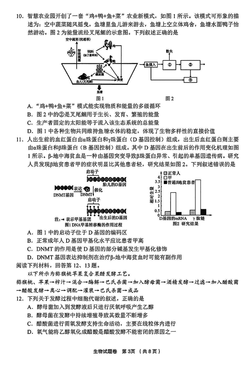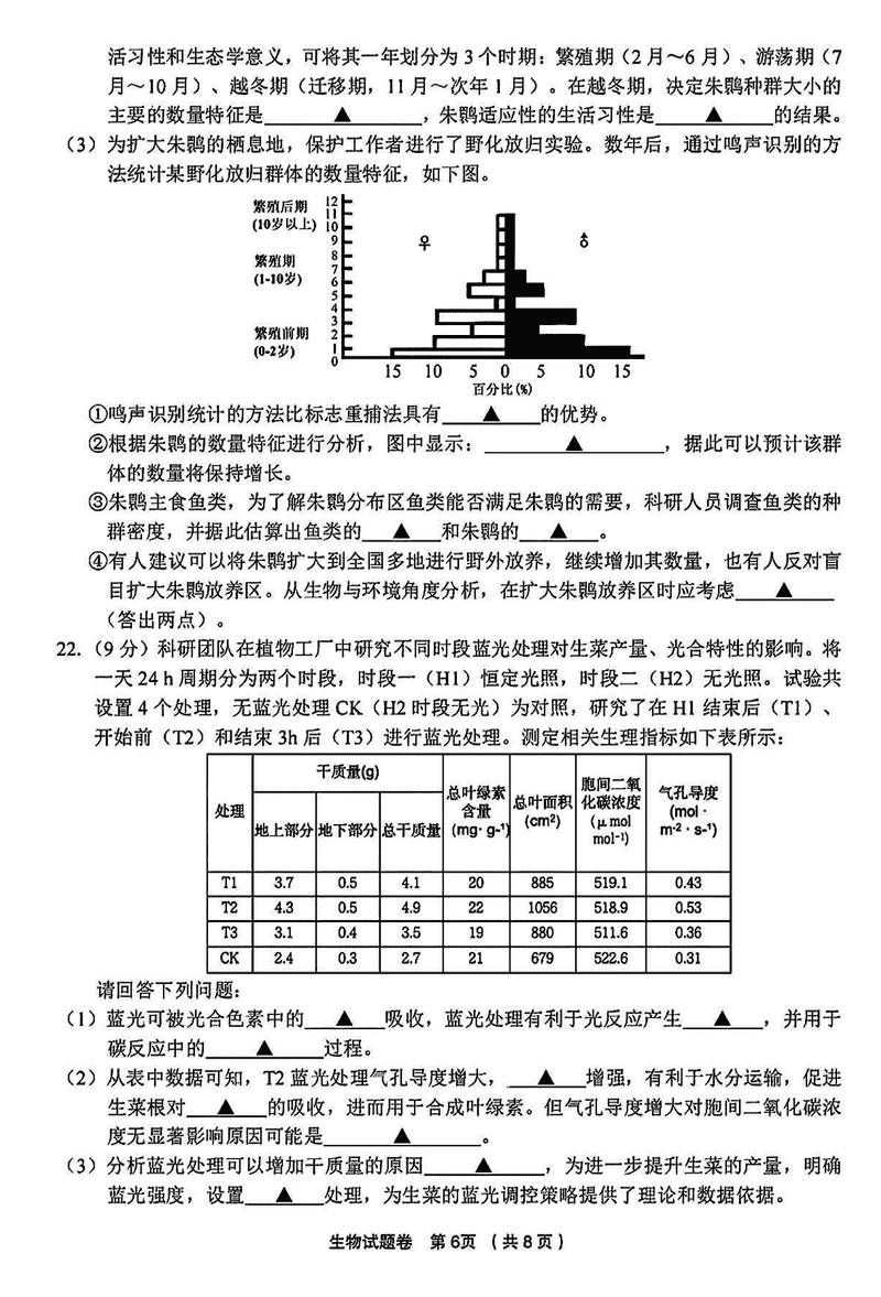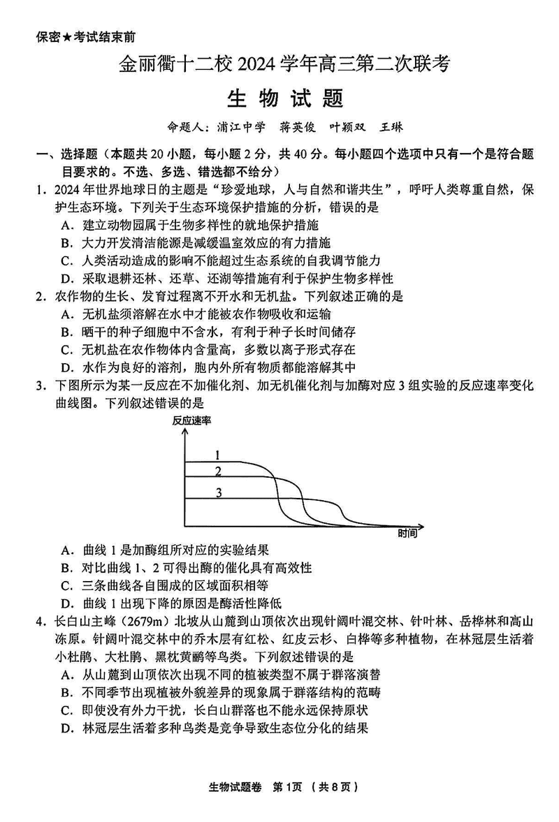 金丽衢十二校2025届高三第二次联考生物试题及答案
