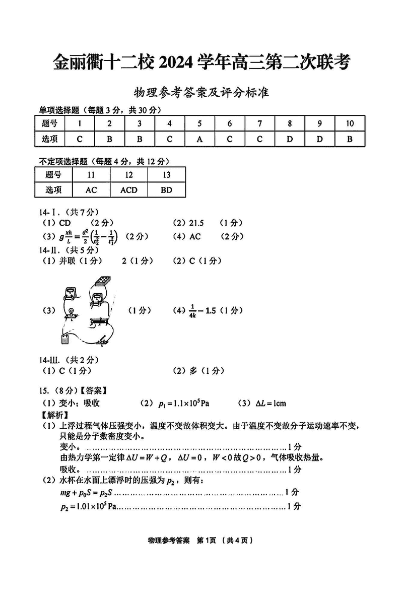 浙江省金丽衢十二校2025届高三第二次联考物理考试已于近日开考,为方便考生考后及时查看考试情况,查漏补缺、弥补不足,本文整理了试题答案解析相关信息!