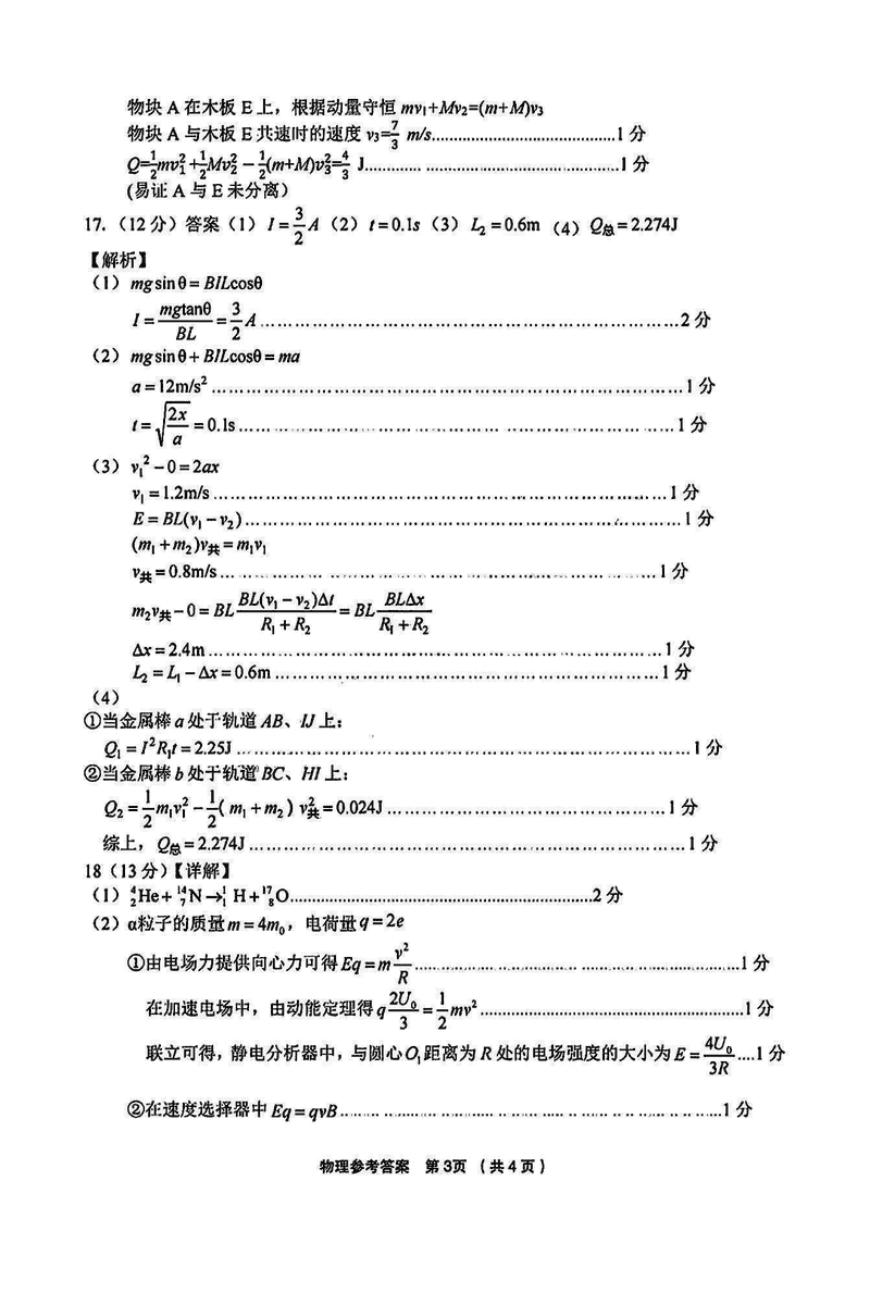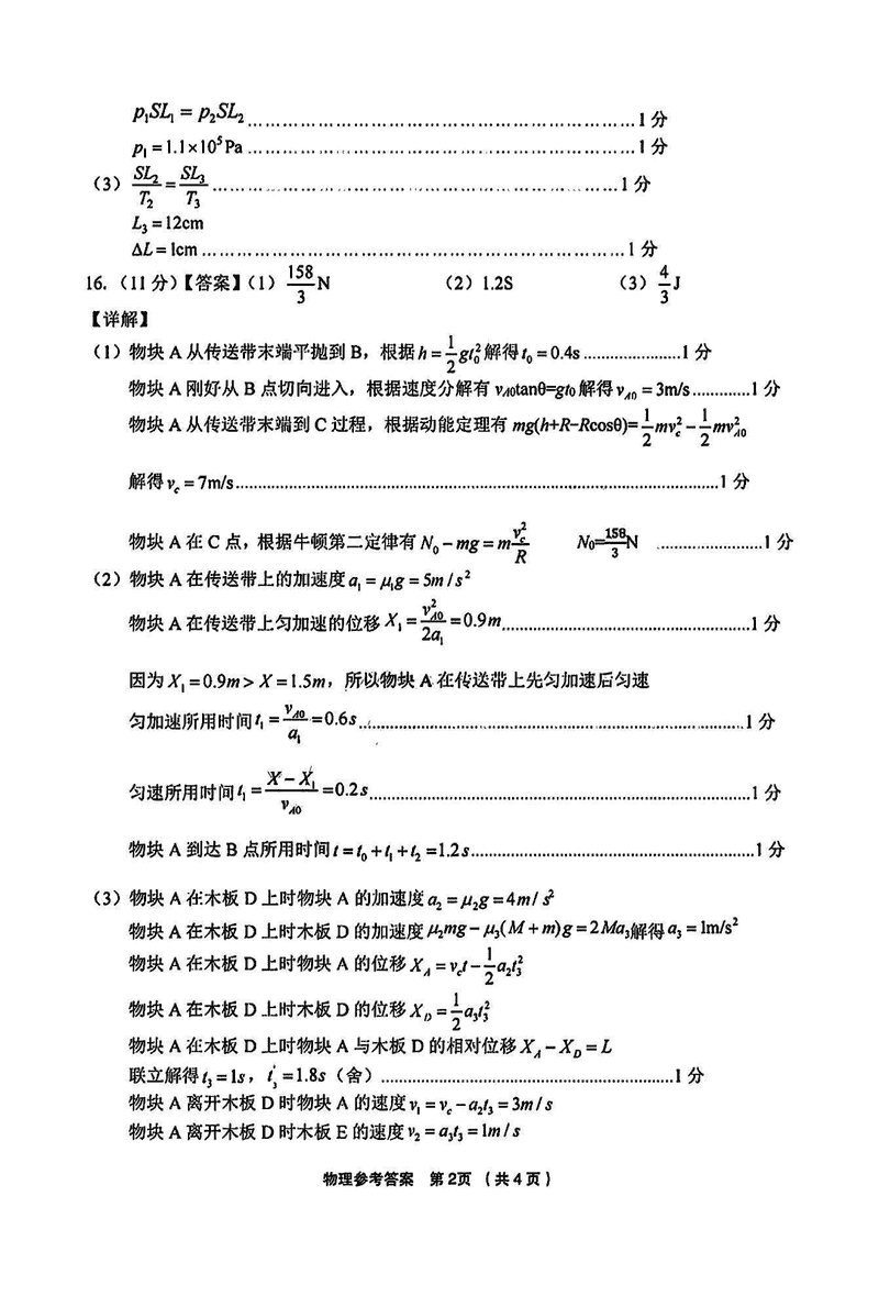 金丽衢十二校2025届高三第二次联考物理试题及答案