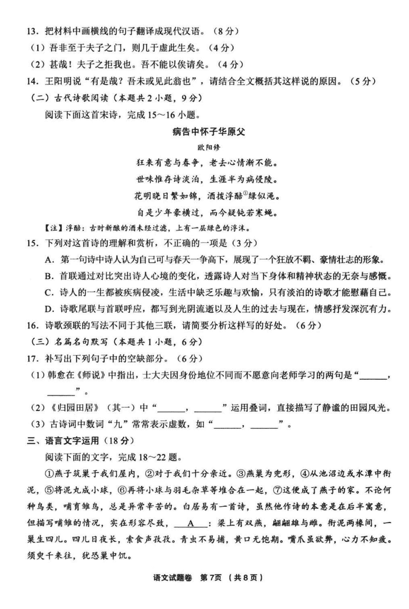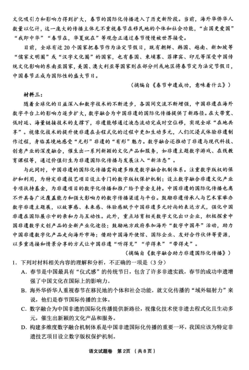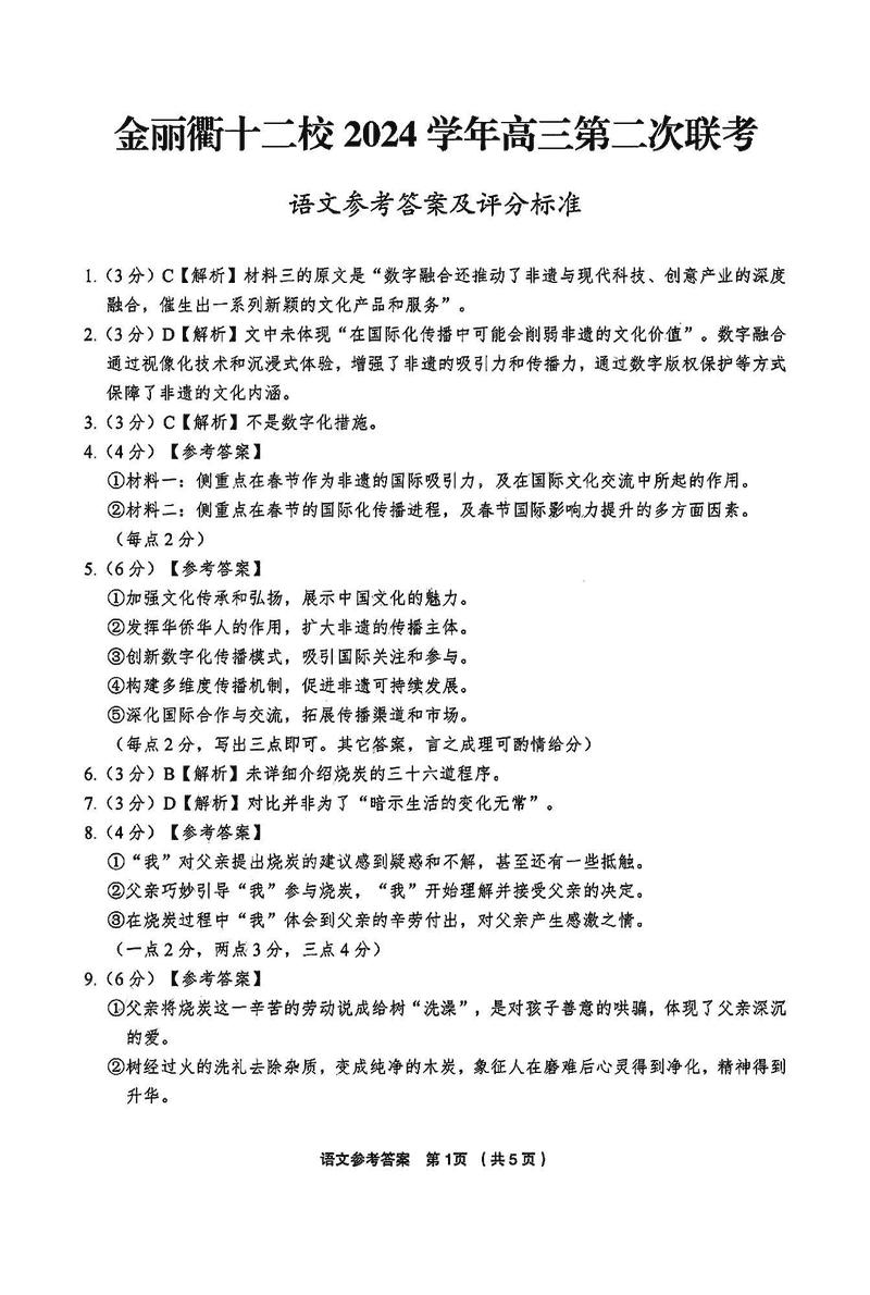金丽衢十二校2025届高三第二次联考语文试题及答案