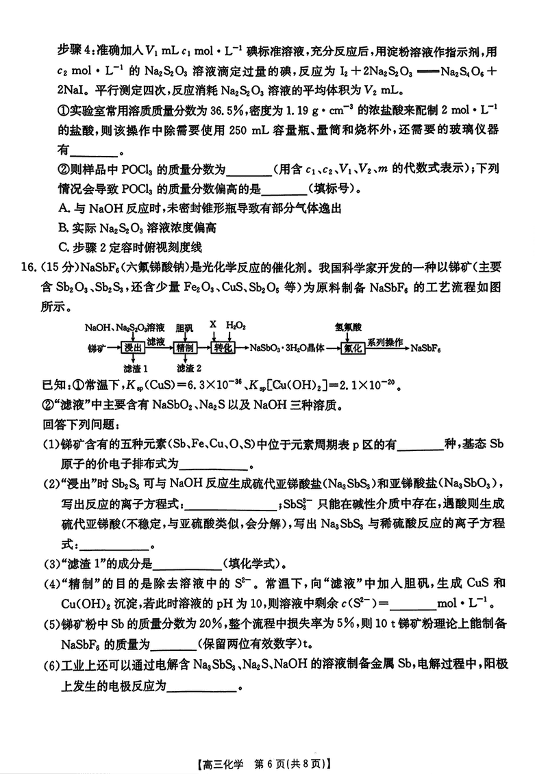 化学试题及答案解析