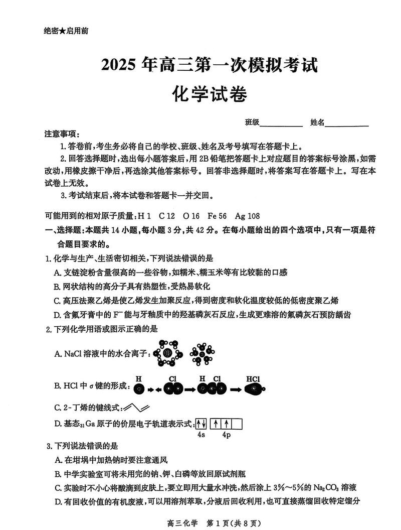 2025届河北沧衡八县联考一模化学试题及答案 时间:2025-03-16 河北 理综试题 2025届河北沧衡八县联考一模化学考试已于近日开考,为方便考生考后及时查看考试情况,查漏补缺、弥补不足,本文整理了试题答案解析相关信息! 汇总:2025届河北沧衡八县联考一模试题及答案汇总 化学试题及答案解析
