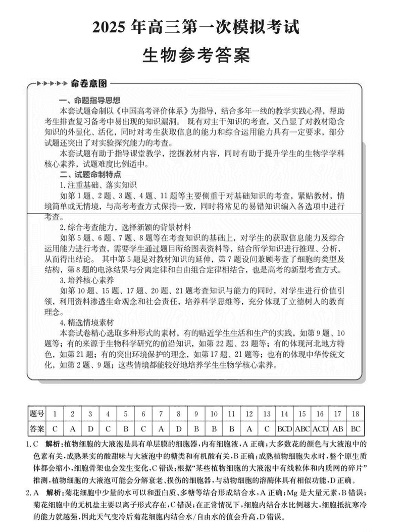 2025届河北沧衡八县联考一模生物试题及答案 时间:2025-03-16 河北 理综试题 2025届河北沧衡八县联考一模生物考试已于近日开考,为方便考生考后及时查看考试情况,查漏补缺、弥补不足,本文整理了试题答案解析相关信息! 汇总:2025届河北沧衡八县联考一模试题及答案汇总 生物试题及答案解析