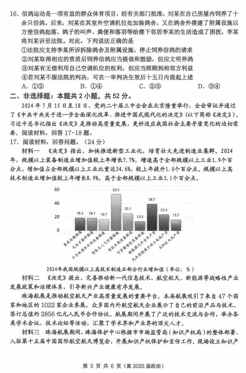 重庆名校联盟2024-2025学年度高三下第一次联考政治试题及答案